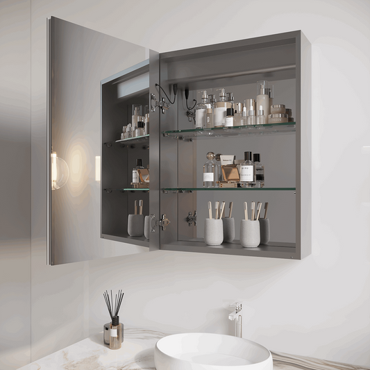 36 x 30 inch Medicine Cabinet with LED Vanity Mirror, Anti-Fog, Recessed or Surface Mount, Waterproof, Dimmable, Aluminum 3000K~6000K Lighted Double Door Bathroom Cabinet with Touch Switch