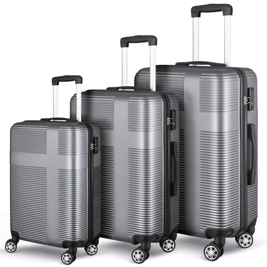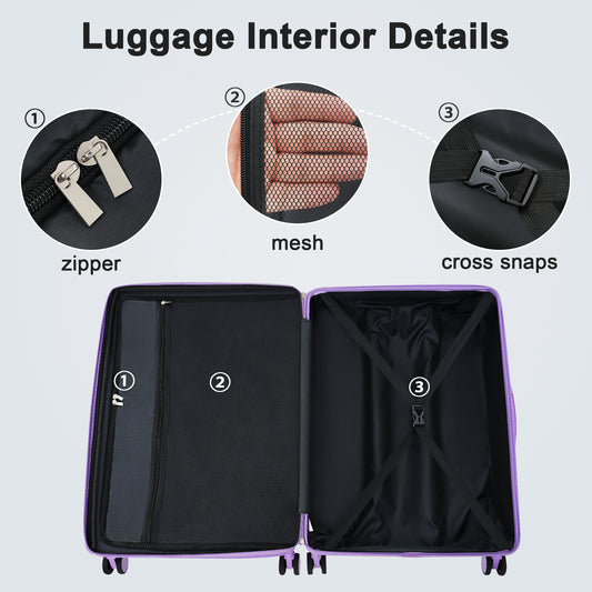 3 Piece Luggage with TSA Lock ABS, Durable Luggage Set, Lightweight Suitcase with Hooks, Spinner Wheels Cross Stripe Luggage Sets 20in/24in/28in