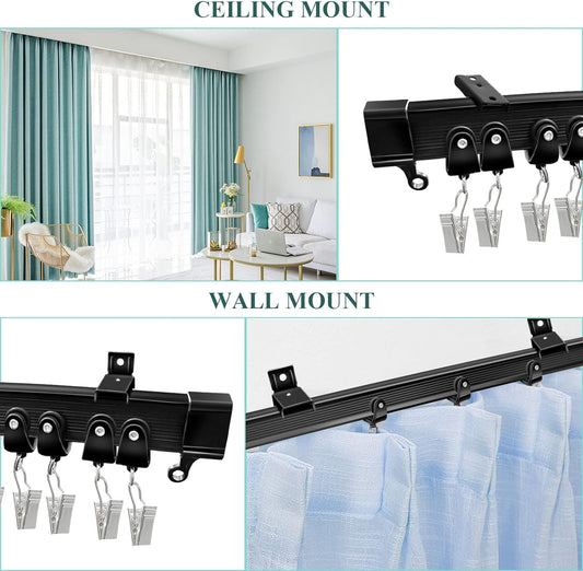Ceiling Curtain Track, Flexible Bendable Curtain Track 20Ft Black Curved Ceiling Track for Curtain Rail Ceiling Wall Mount Curtain Sliding Track System Set for RV, Bay Window, Room Divider