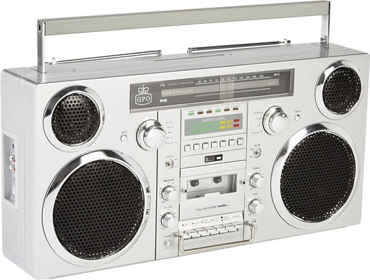 GPO Brooklyn 1980S-Style Portable Boombox - CD Player, Cassette Player, FM Radio, USB, Wireless Bluetooth Speaker