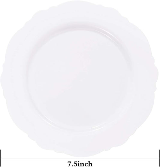 WDF 60pcs White Plastic Plates -7.5inch Baroque White Disposable Appetizer Plates Small Plates Cake Plates- Dessert/Salad Plates for Upscale Parties &Wedding