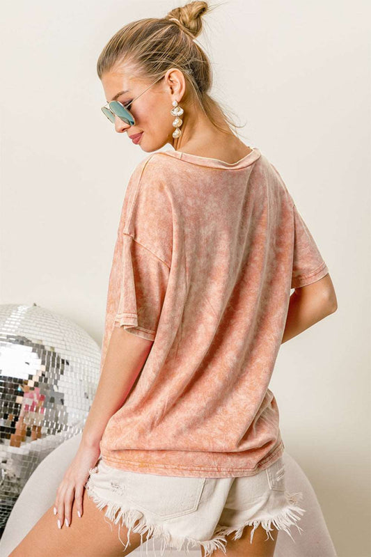 Peach Blossom Ruffled Half Sleeve V Neck Textured Top