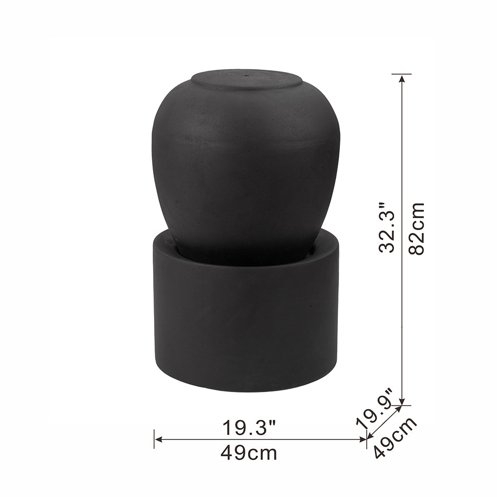 19.5x19.5x32.5" Heavy Outdoor Cement Fountain Black, Cute Unique Urn Design Water feature For Home Garden, Lawn, Deck & Patio