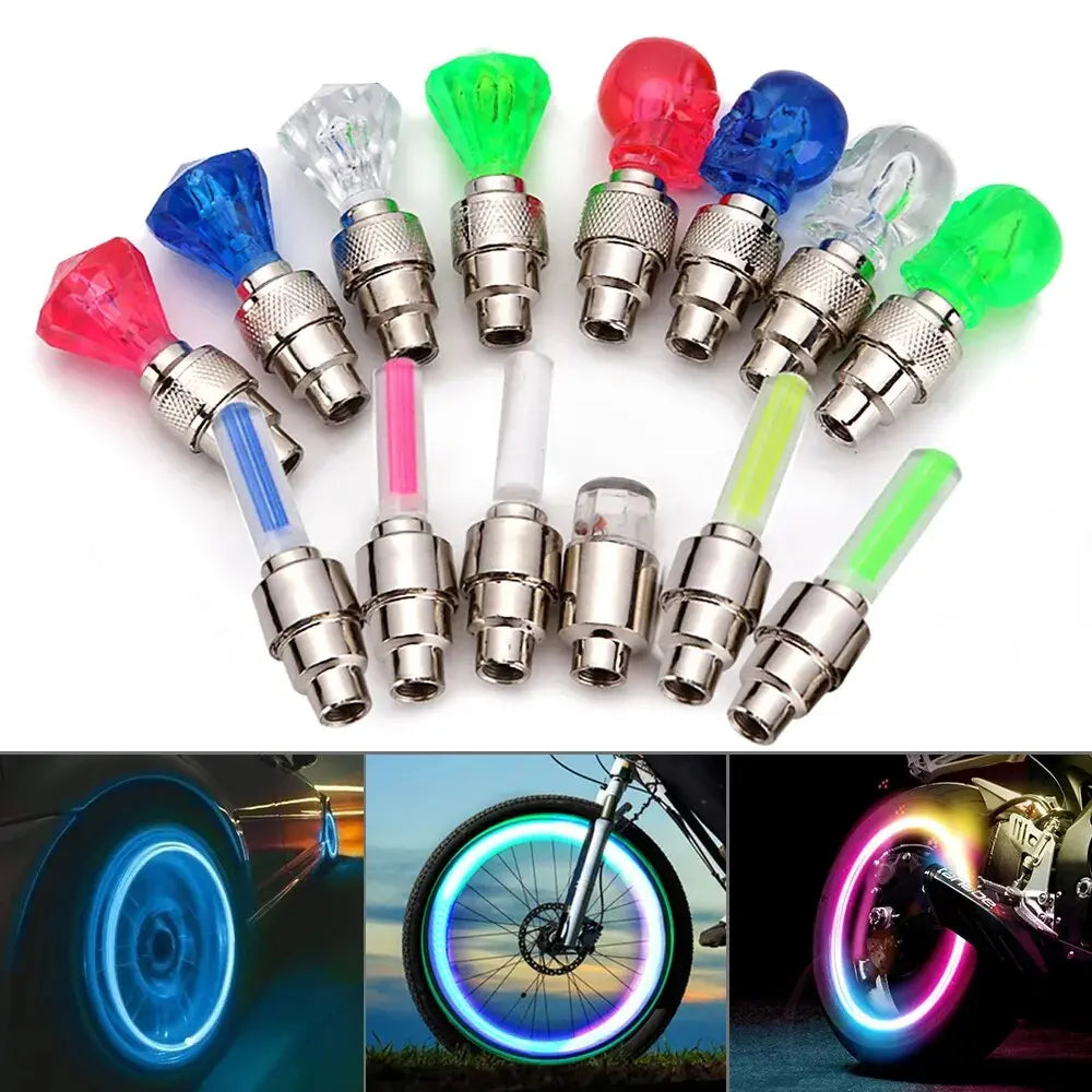 1pc Neon Bicycle Spoke Lights Bicycle Wheel Lights With Battery For Mountain Road Bike Motorcycle LED Tyre Tire Valve Caps Light