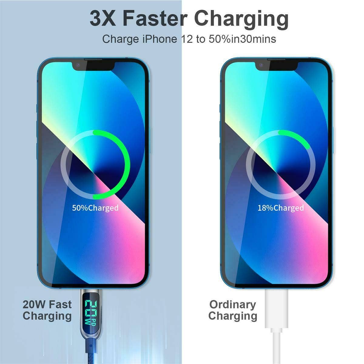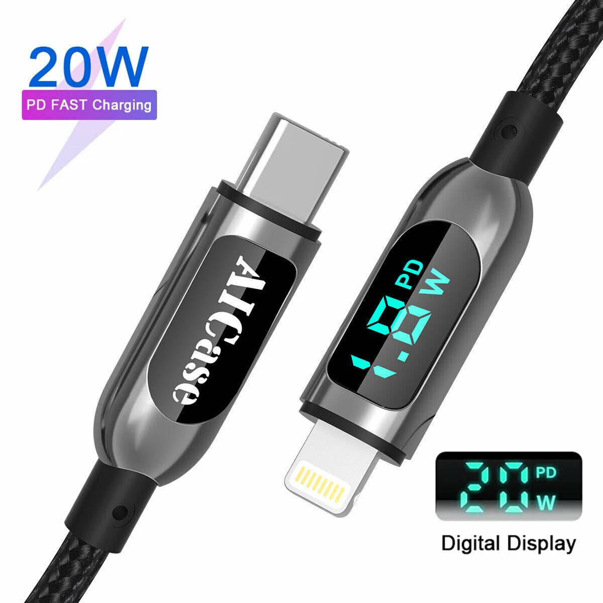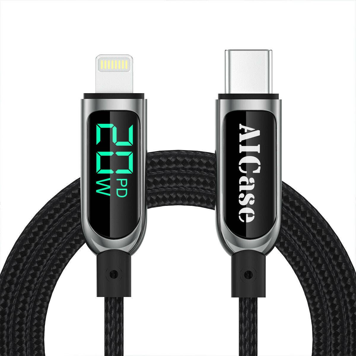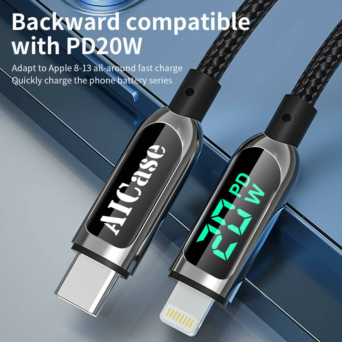 【LED Display Real-time Monitoring】AICase USB C to Lightning Cable support high power and current(9V/3A). Real-time display of current power and fast charging icon, easy check of charging state.