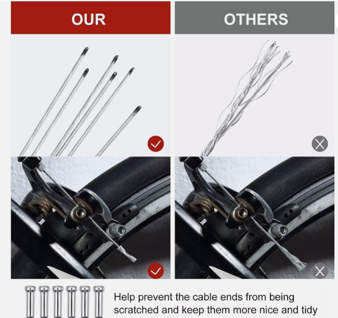 - Package includes 50 x bike replaceable brake cables, and alloy cable caps end tips.