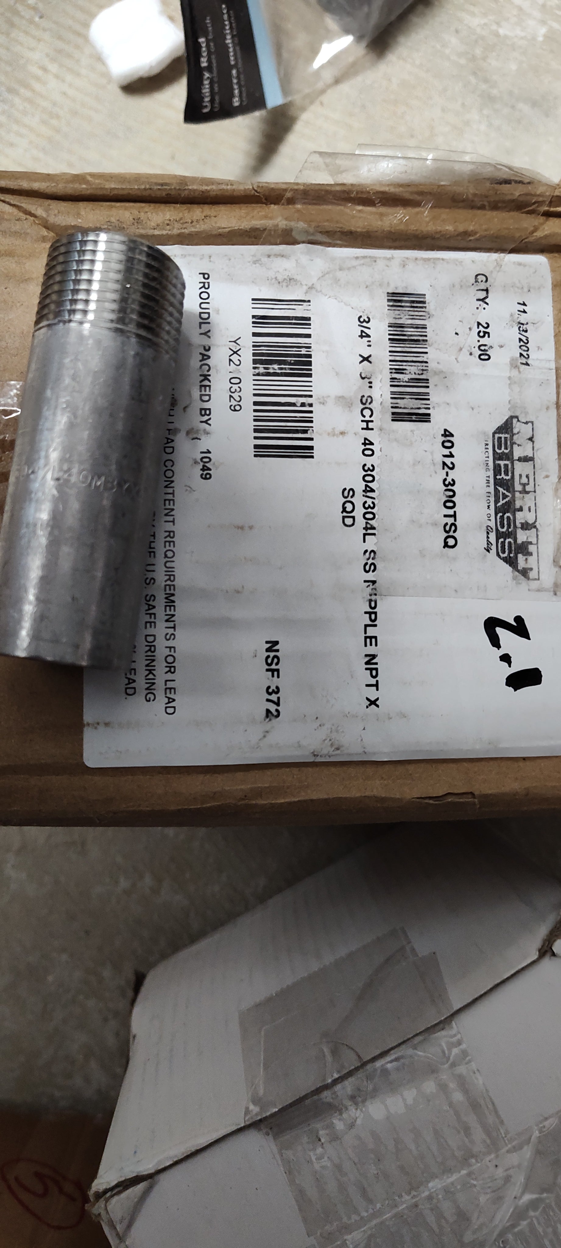 3/4"x3" sch 40 304/304l ss nipple npt x sqd (25 Pieces)