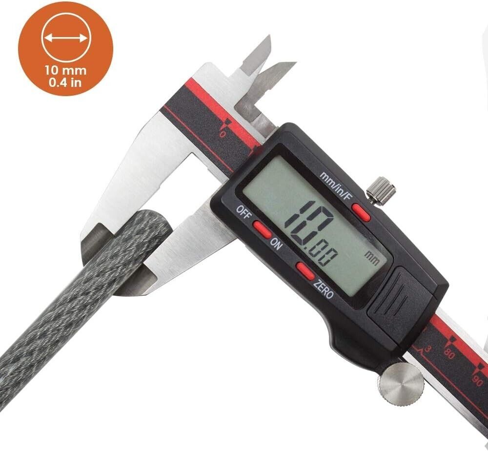 - Strong and cut-resistance steel cable - 3/8 inch (10mm) diameter braided steel with 7 braided steel cables.