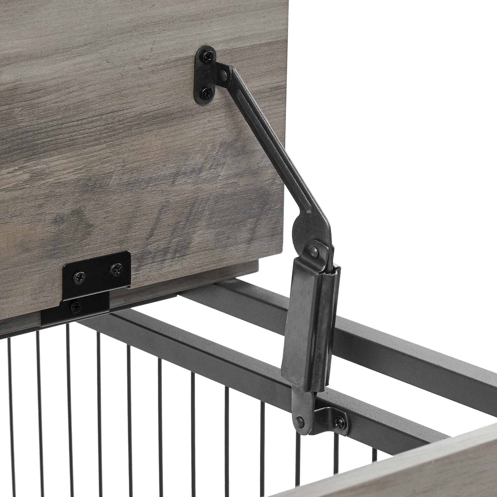 Furniture Style Dog Crate Side Table on Wheels with Double Doors and Lift Top.Grey,38.58''w x 25.5''d x 27.36''h.