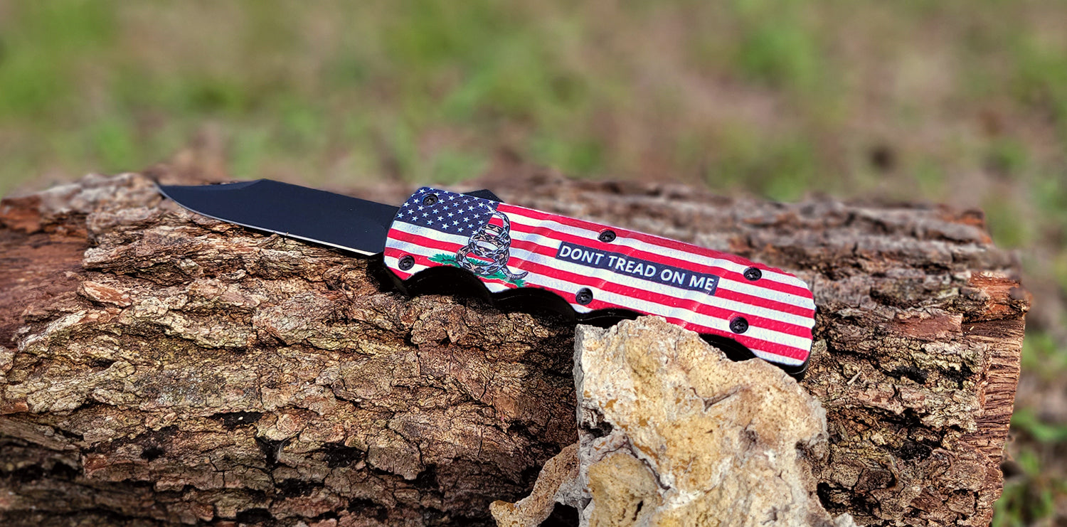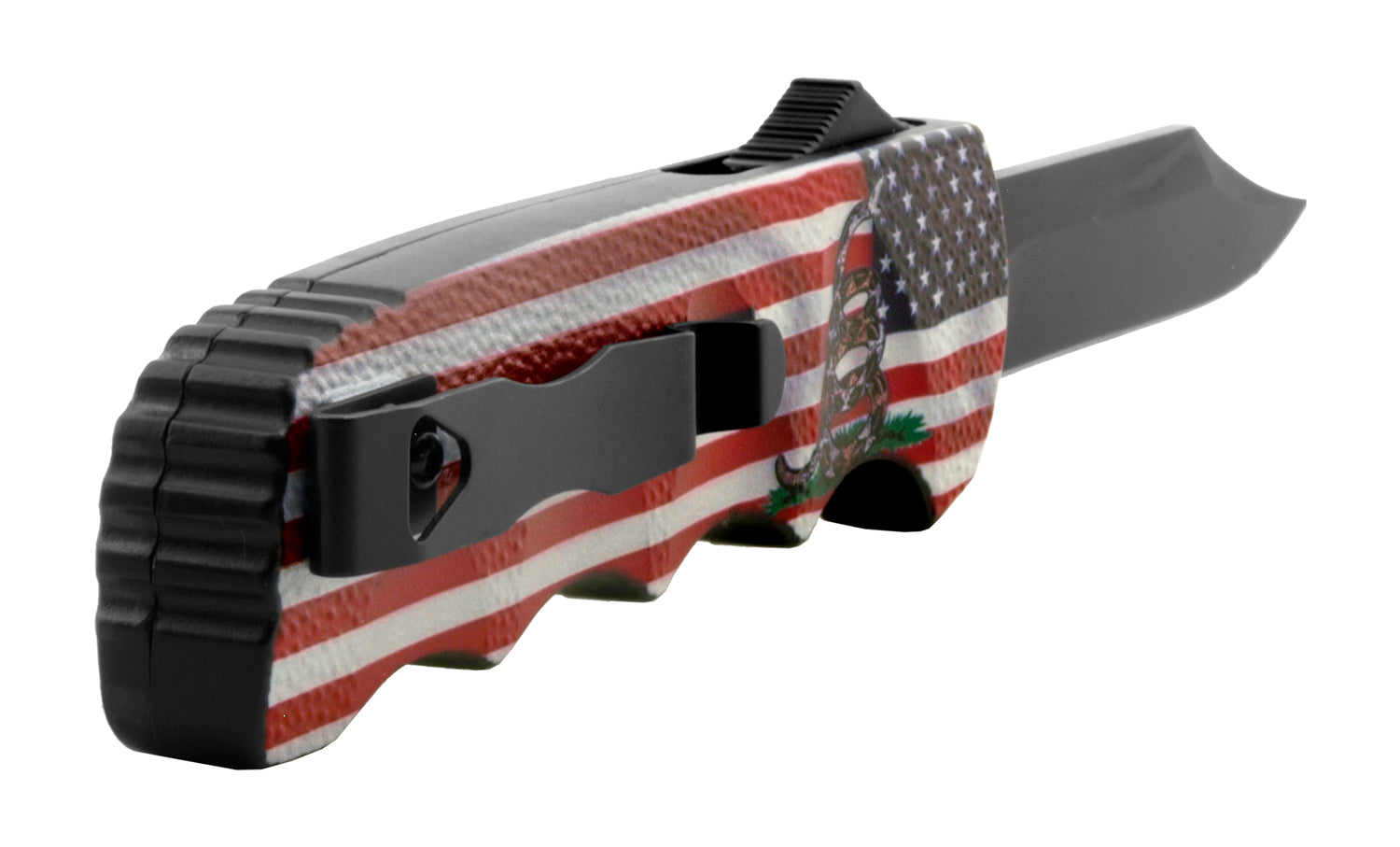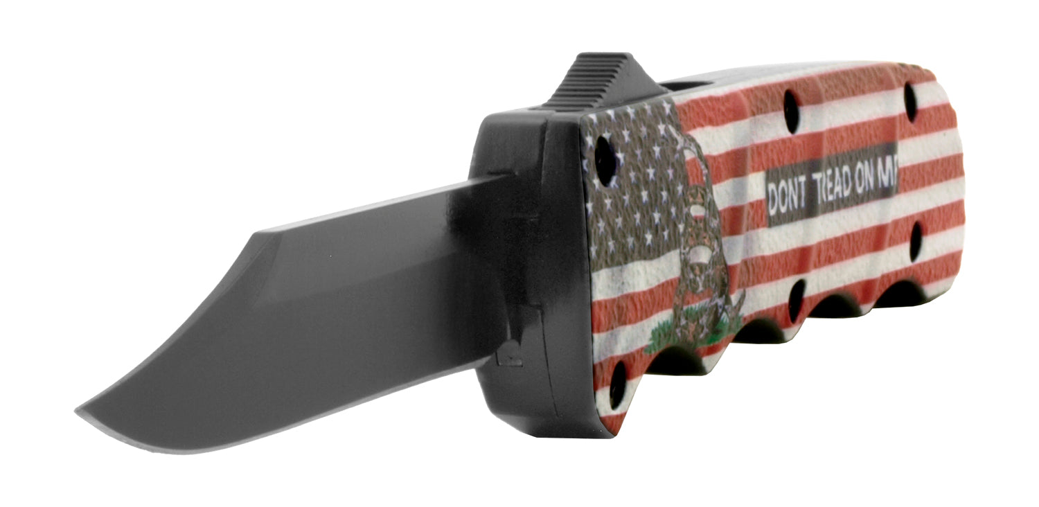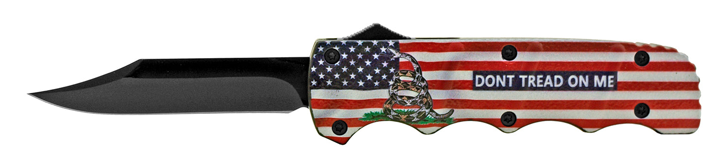 5.25" "Don't Tread on Me" Out the Front Folding Automatic Pocket Knife - Gadsden American Flag