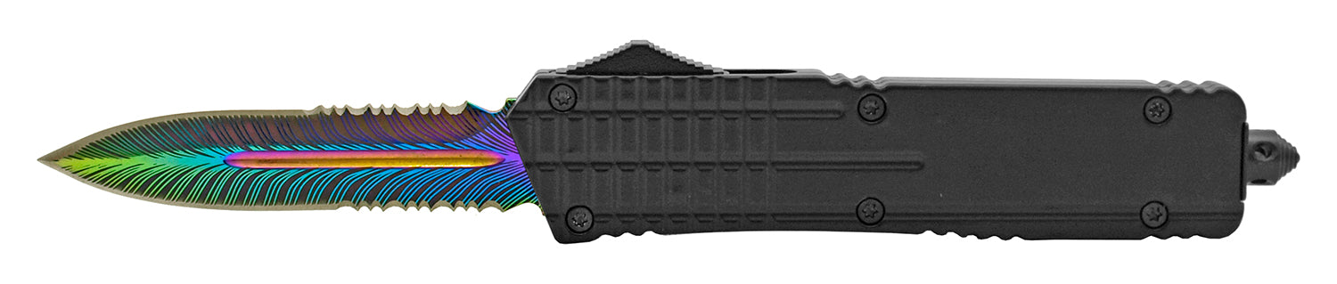 5.5" Heavy Duty Stainless Steel Serrated Spear Point OTF Out the Front Automatic Folding Pocket Knife - Rainbow