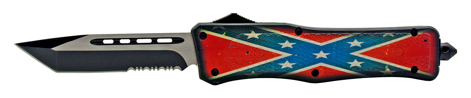5.75" Super Heavy Duty OTF Out the Front Folding Automatic Pocket Knife - Southern Confederate Flag