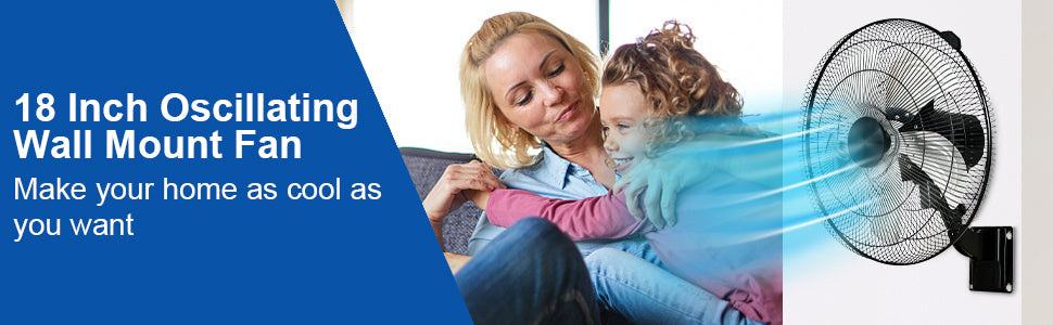 2Pack HealSmart 18 Inch Household Commercial Wall Mount Fan, 90 Degree Horizontal Oscillation, 5 Speed Settings, Black