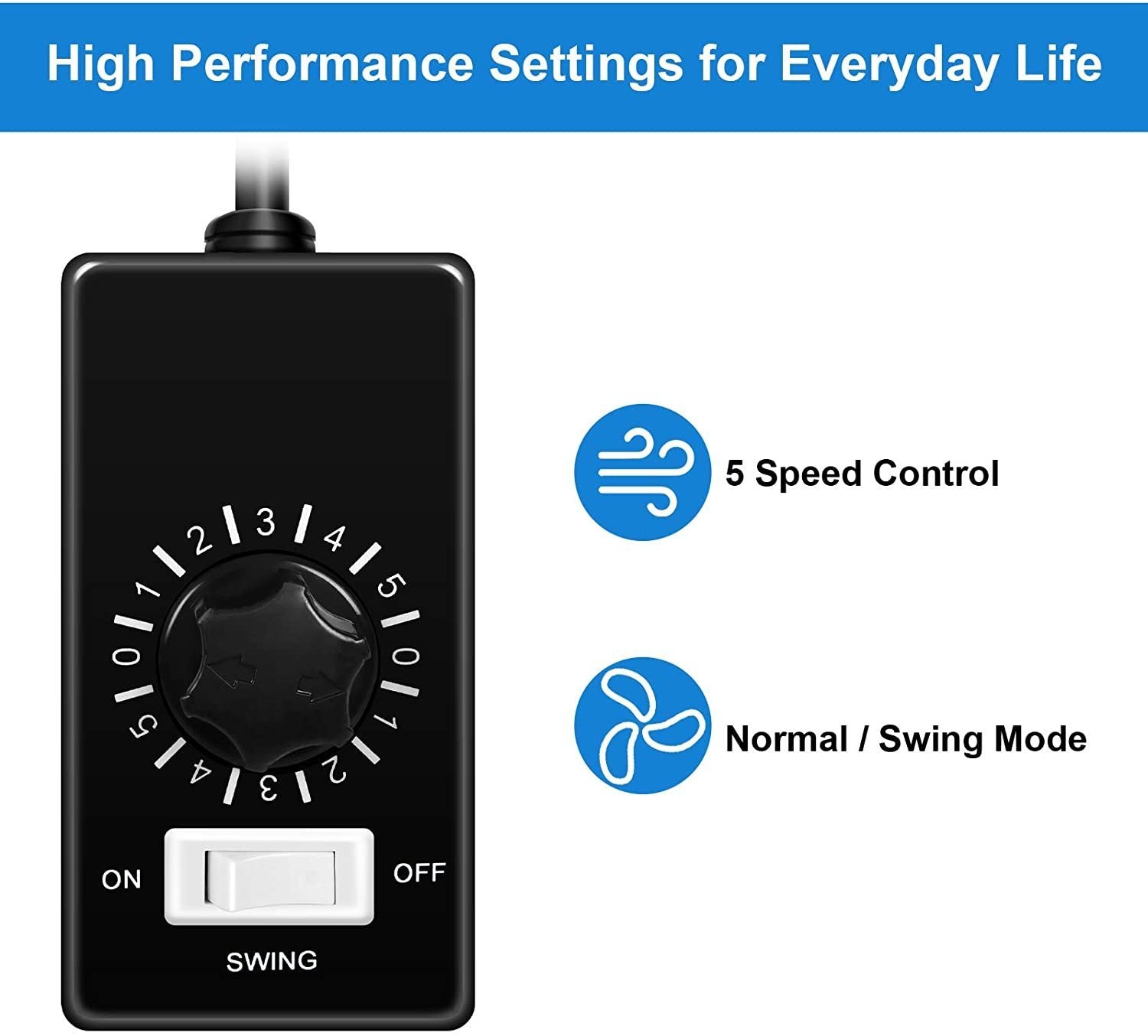 - [Strong Wind] This Fan controls 5 high performance speeds and 2 modes. A powerful 5-speed motor that produces up to 9.2m/s of airflow, sound less than 60db, ensuring maximum air circulation. Metal blades provide stronger wind. Make your home as cool as you want.