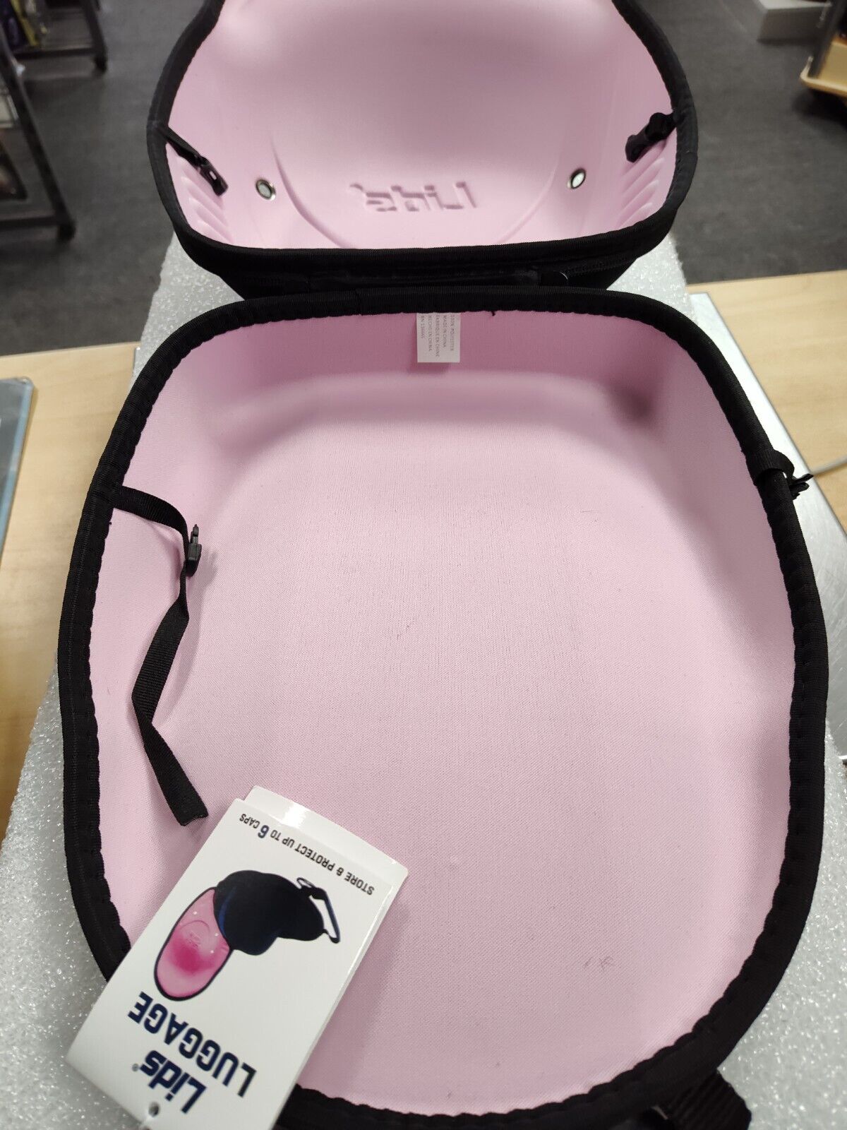 LIDS Cap Luggage Container-Black Exterior/Pink Interior- Durable Storage 6 PACK of hat cases
