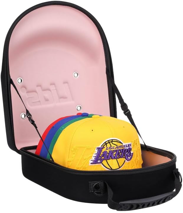 Lids Cap Luggage Container(Black Exterior/Pink Interior) - Durable Storage for Baseball Caps, Hat Organizer Holder for 6 Caps per case, 6 cases- Hat Travel Case, Carrier