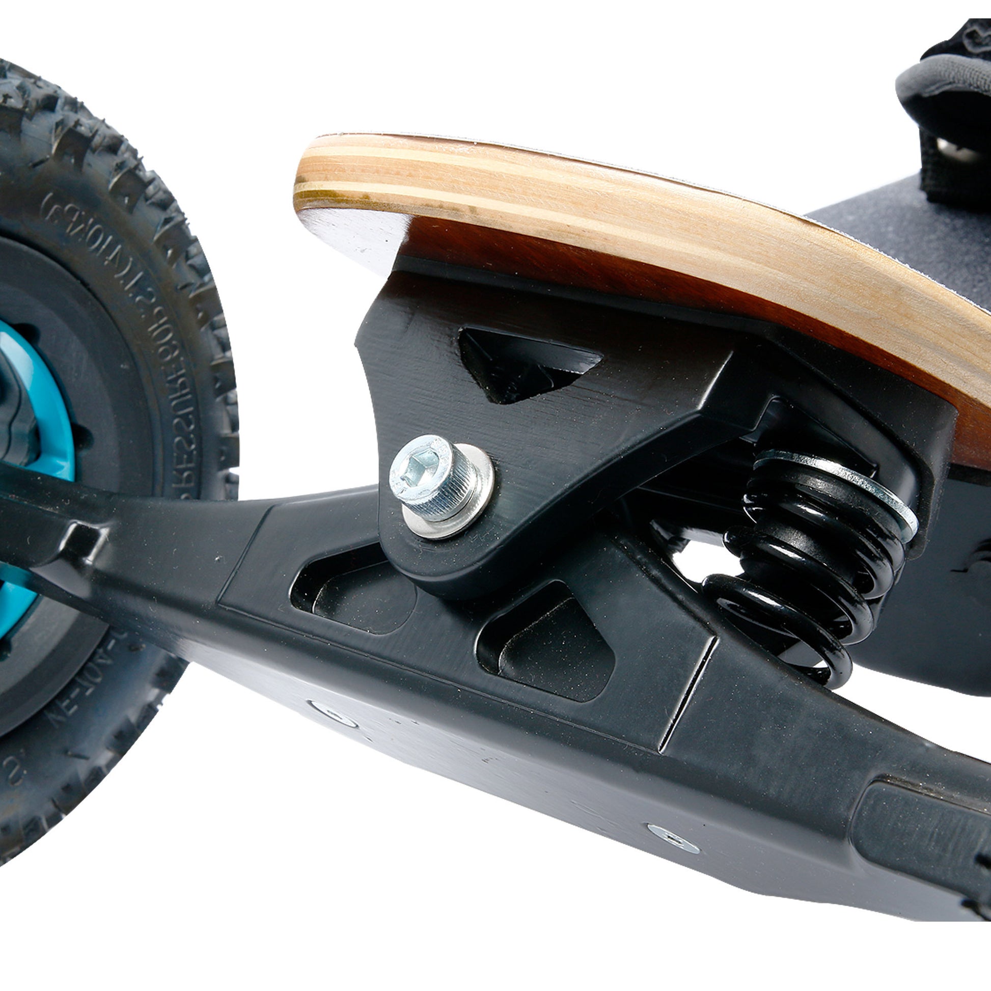 Skateboards are equipped with springs for various topography. With spring, the effect of shock absorption is better,cushioning bumps and the gliding are more comfortable.Will fully reflect the stability of the sliding jump,This makes it easy to handle a variety of rough roads.