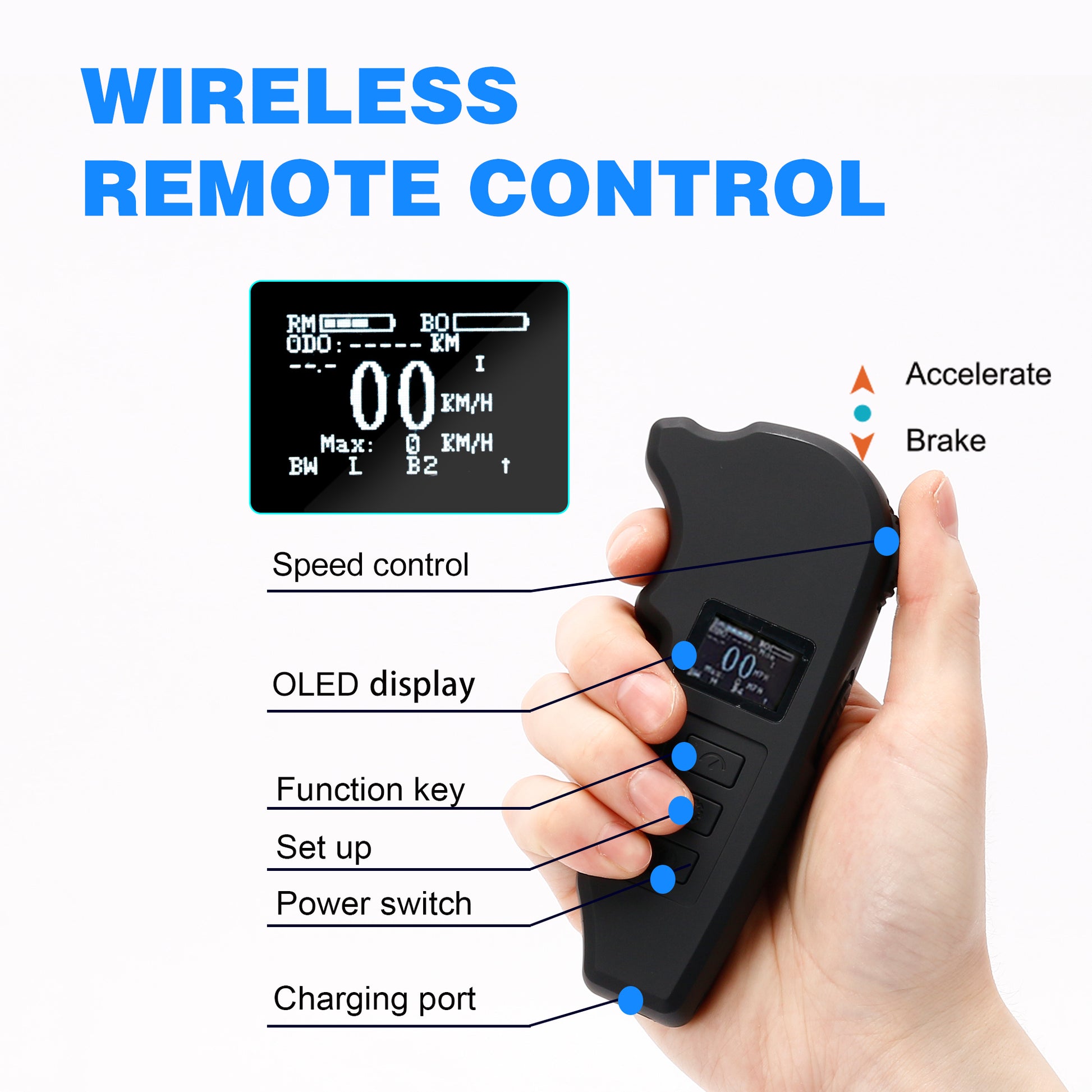 with screen In this suite of electric skateboards, a very simple and easy-to-use wireless remote control is added to the skateboard so that the control device of the vehicle is at your fingertips. Come with screen which you can see the data of "speed model ", remote control battery level", "electric skateboard battery level'' and ''direction mark ".