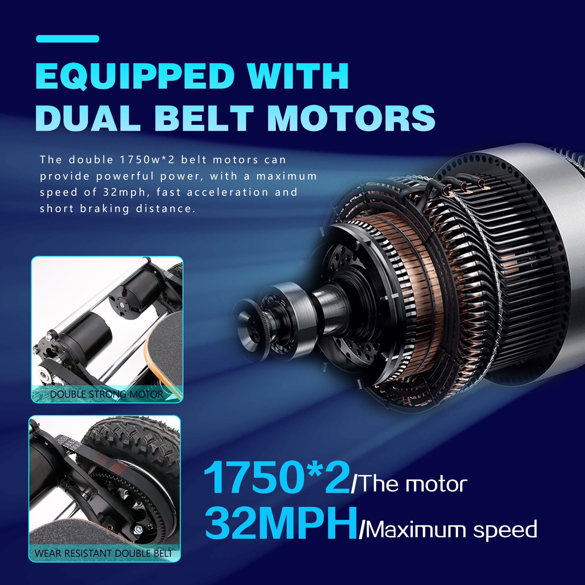 The double 1750w*2 belt motors can provide powerful power, with a maximum speed of 32mph, fast acceleration and short braking distance.