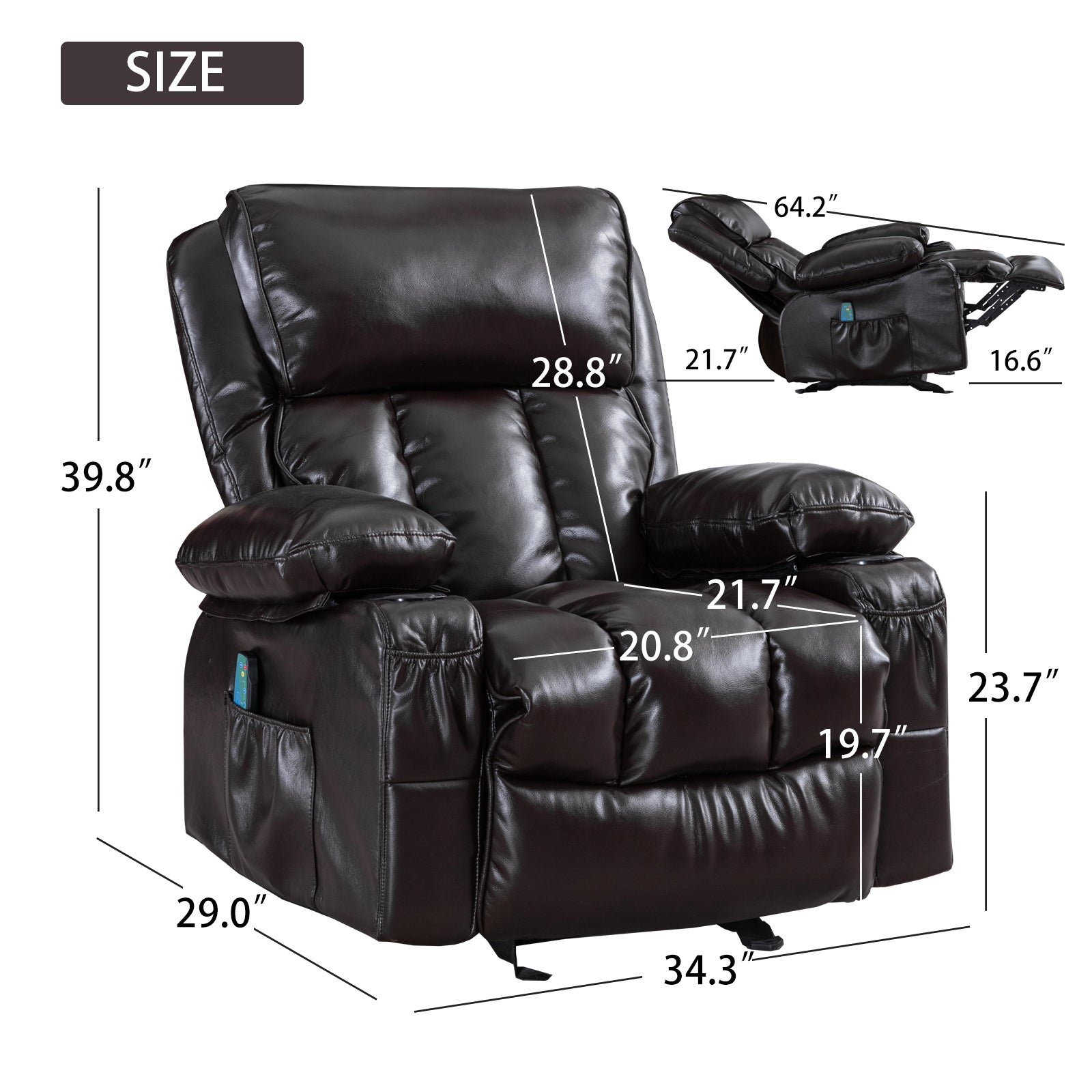- Side pockets: Side storage pockets for easy magazine and remote control placement.