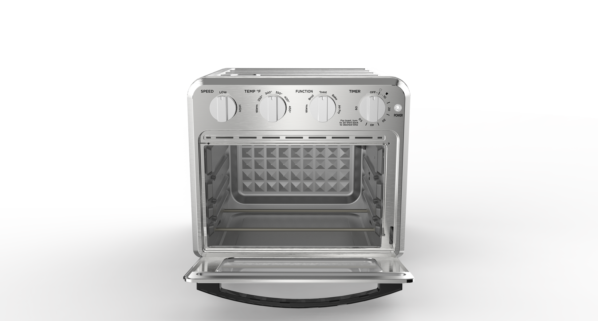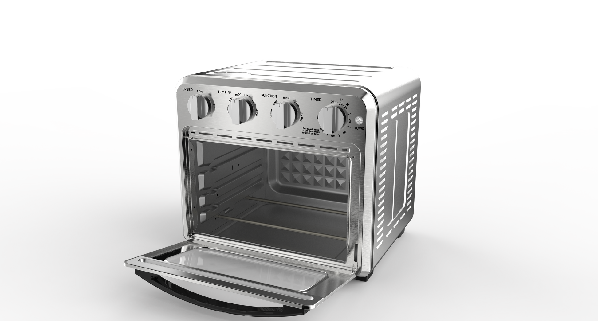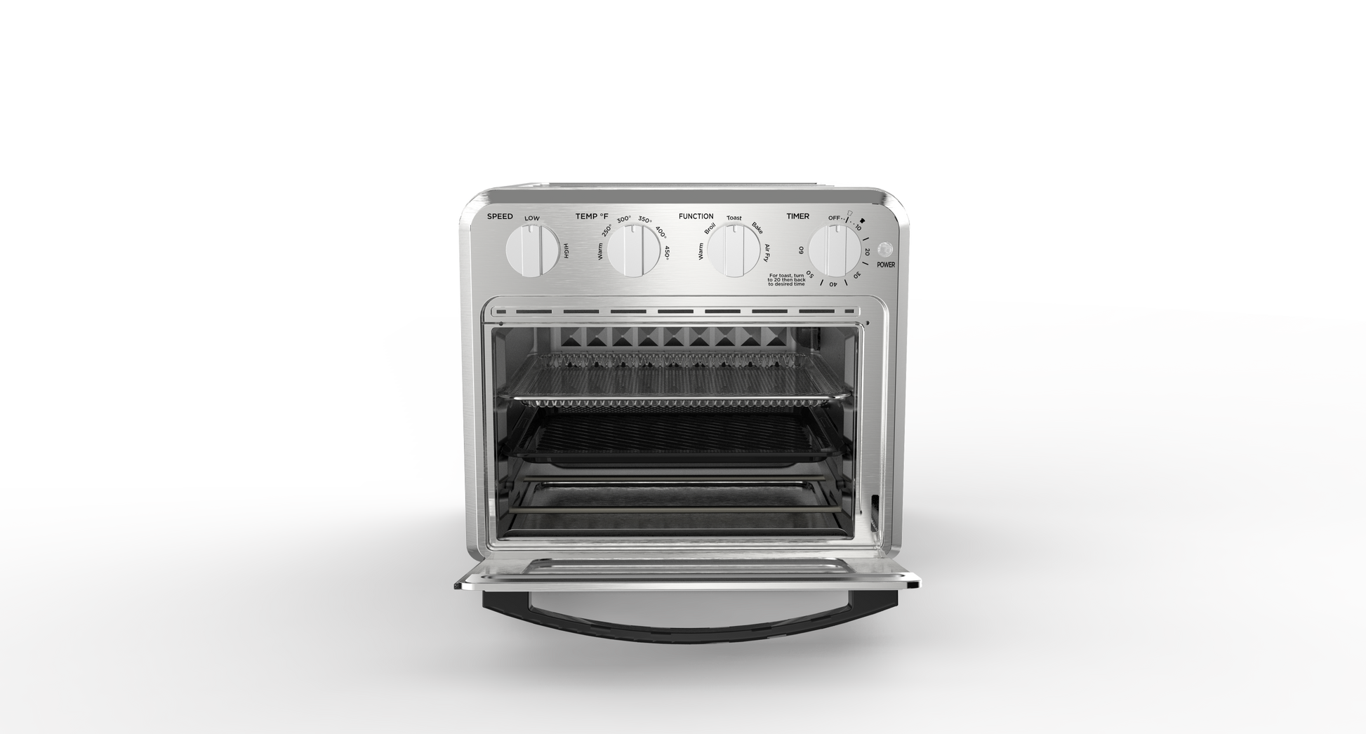 - 120V 60Hz 1400W, ETL Air flow technology 16L capacity Mechinical control with 4 knobs Stainless steel housing 450℉ temperature Fan speed adjusting Power indicator