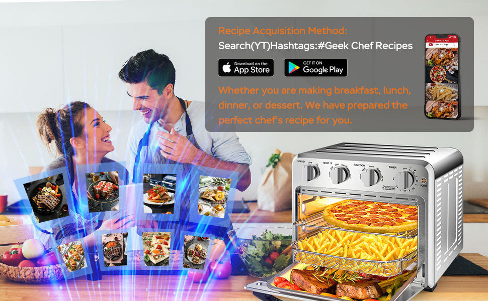 Geek Chef Air Fryer Toaster Oven Combo, 4 Slice Toaster Convection Oven Warm, Broil, Toast, Bake, Oil-Free, Accessories Included, Stainless Steel, Silver(16QT Air Fryer Oven) Ban on Amazon, Temu