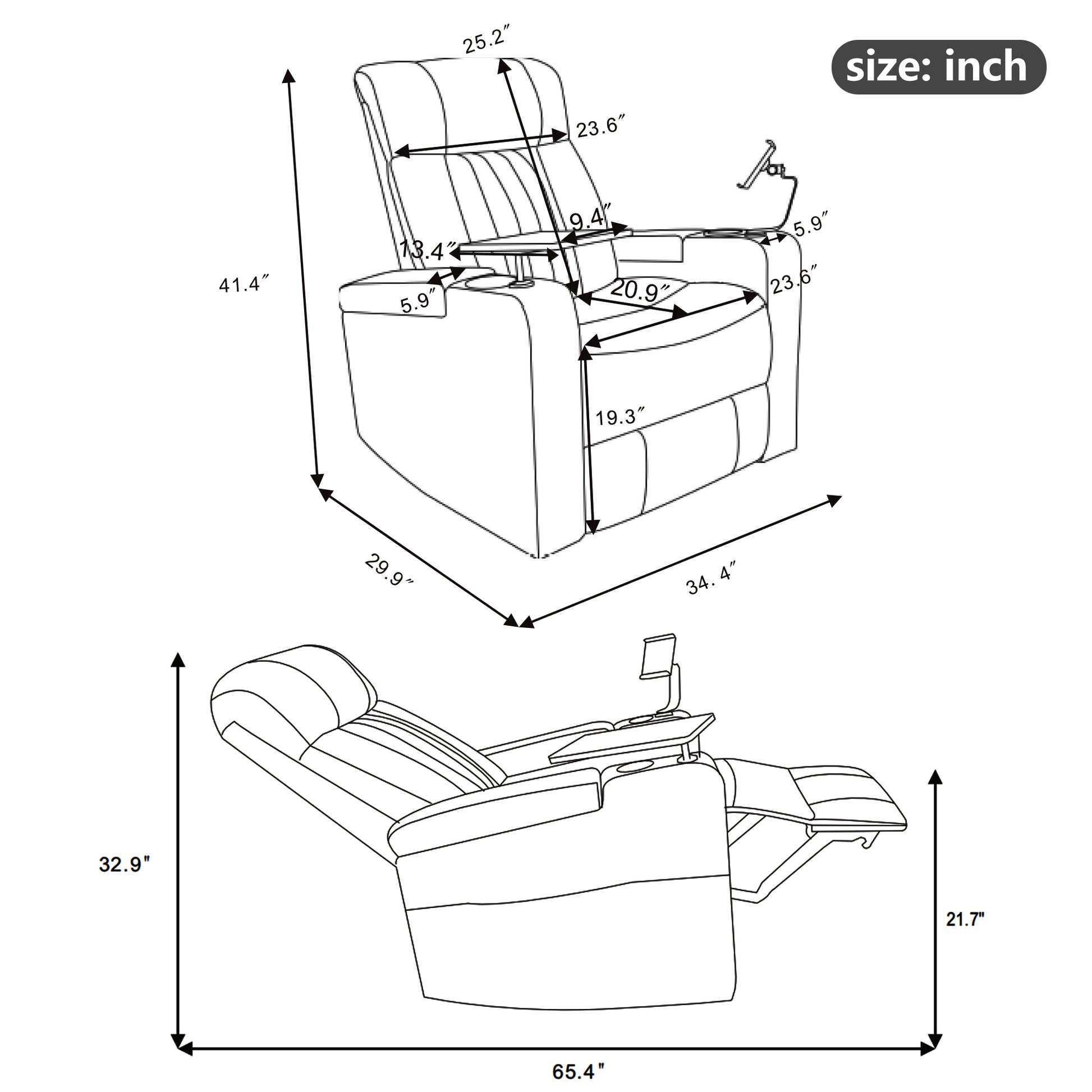 - 360° Swivel Tray Table and Phone Holder - Swivel tray is perfect for use with a laptop or tablet when you need to work, or to hold your snacks during the show.Moreover,The reclilner with cell phone stand can free hands to look at the phone and adjust various viewing angles.