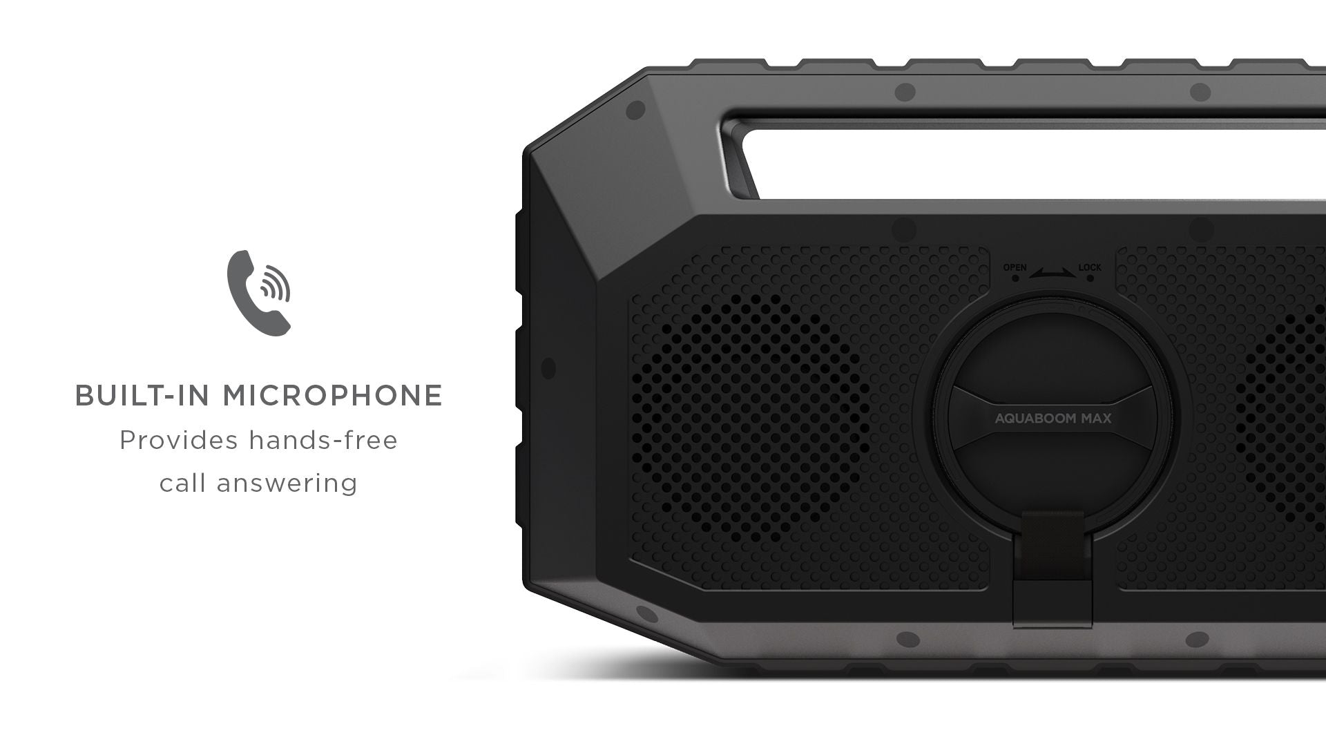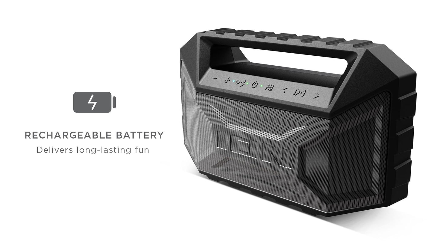 The Aquaboom has a built-in rechargeable battery for hours of uninterrupted fun and a built-in microphone so you can answer your calls without fumbling for your phone. This is the ultimate outdoor entertainment partner, no matter what the conditions.