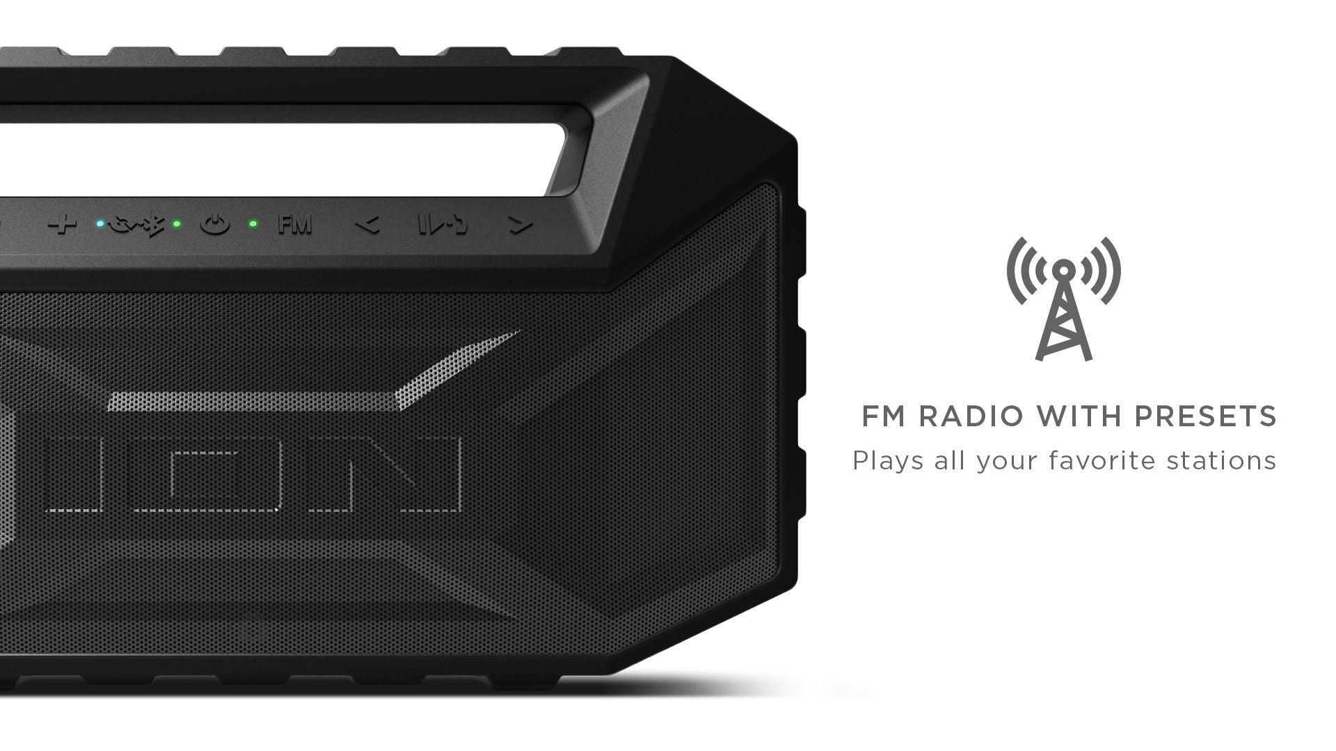 - FM radio with presets plays all your favorite stations