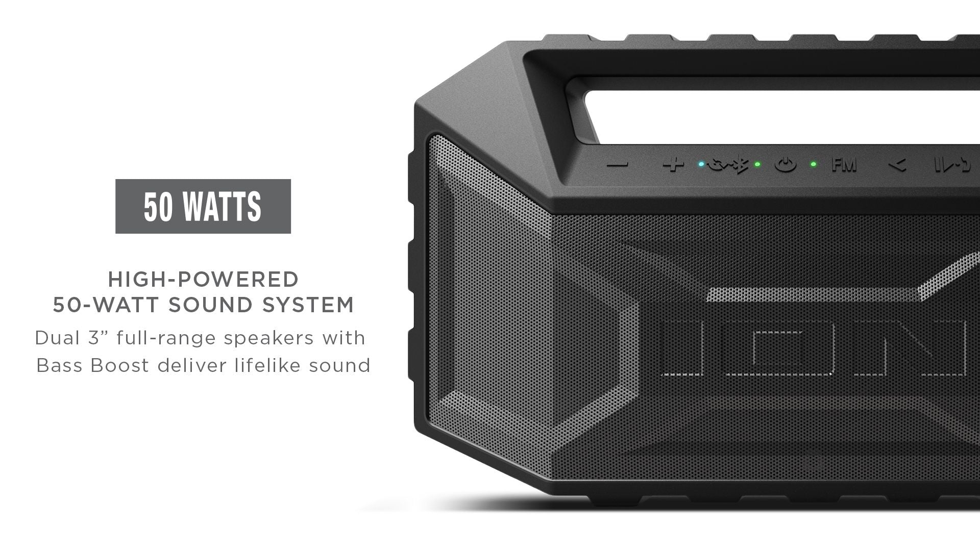 - High powered sound system with dual 3” full-range speakers with Bass Boost deliver lifelike sound