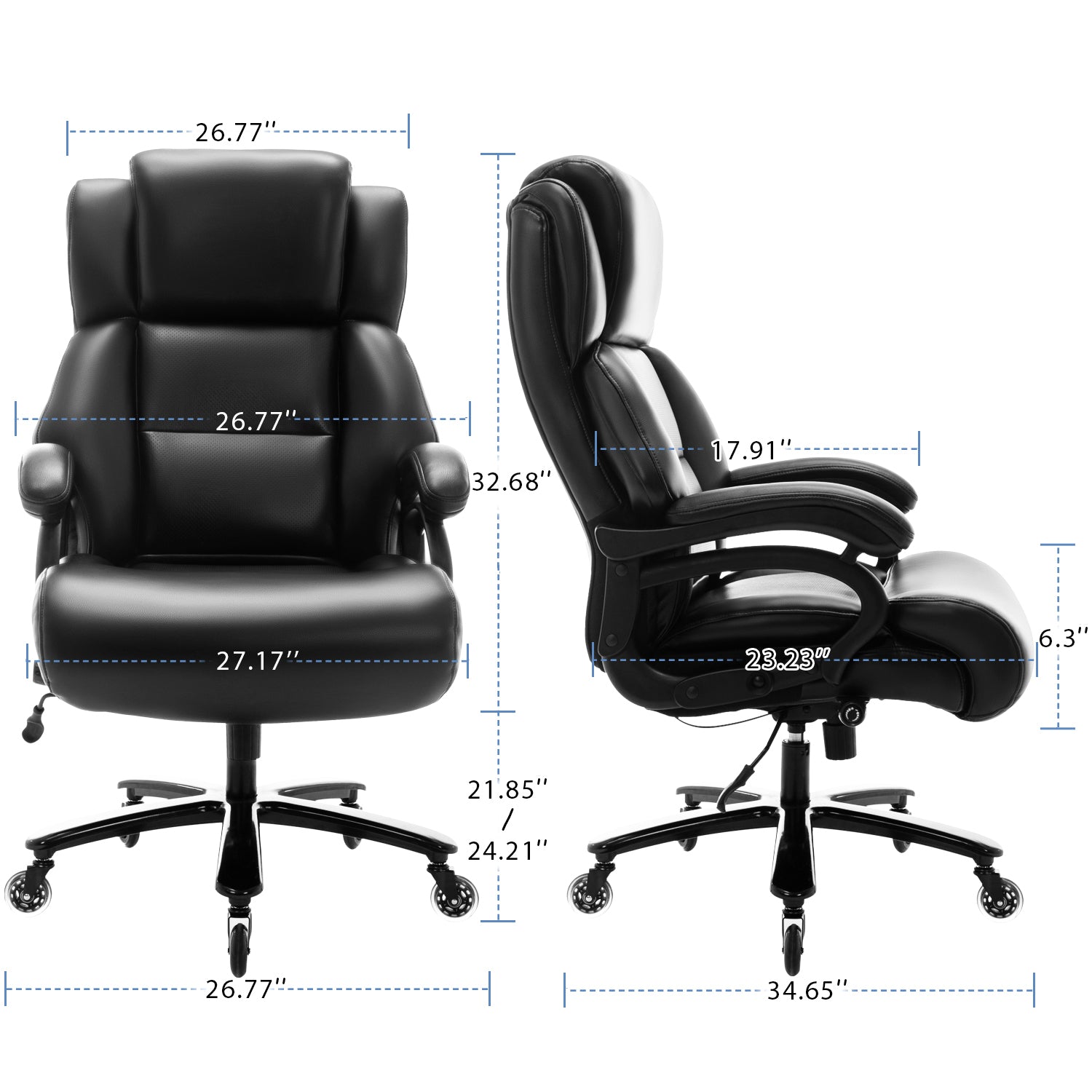 - Feel More Energized At Work: This high rolling chair allows you to experience the most long-lasting comfort. The executive office chair cushion is made of high-end, breathable bonded leather that keeps your skin cool and dry, with soft, comfortable padding preventing the pain and discomfort that comes from being locked into the same position for too long