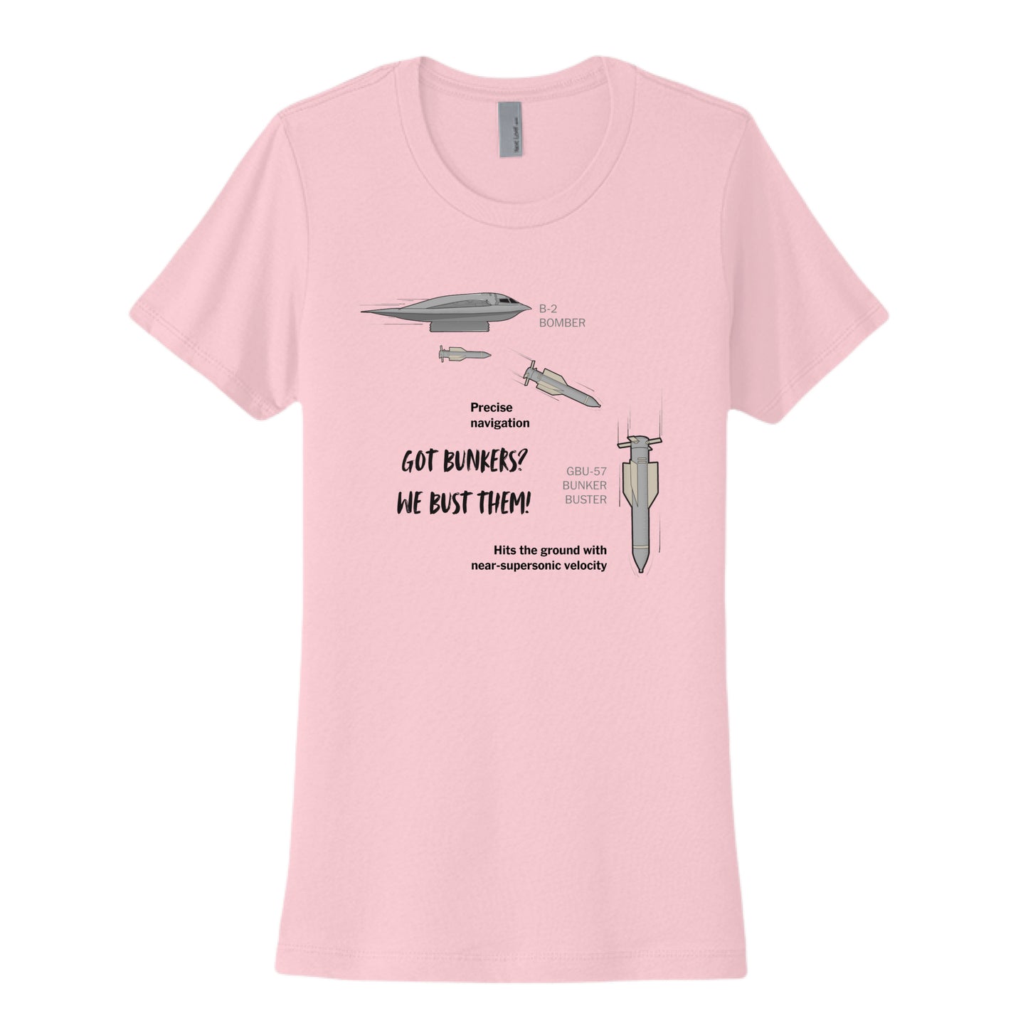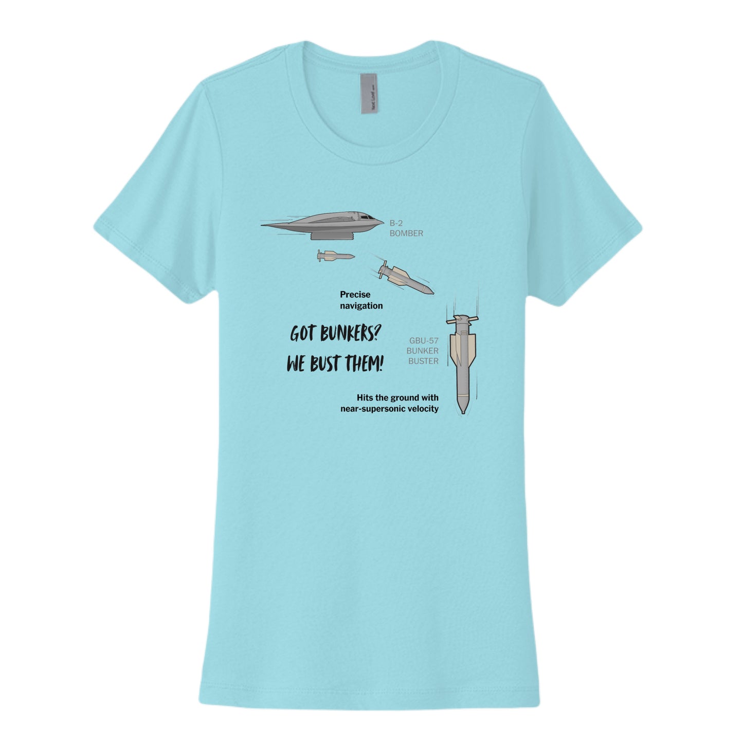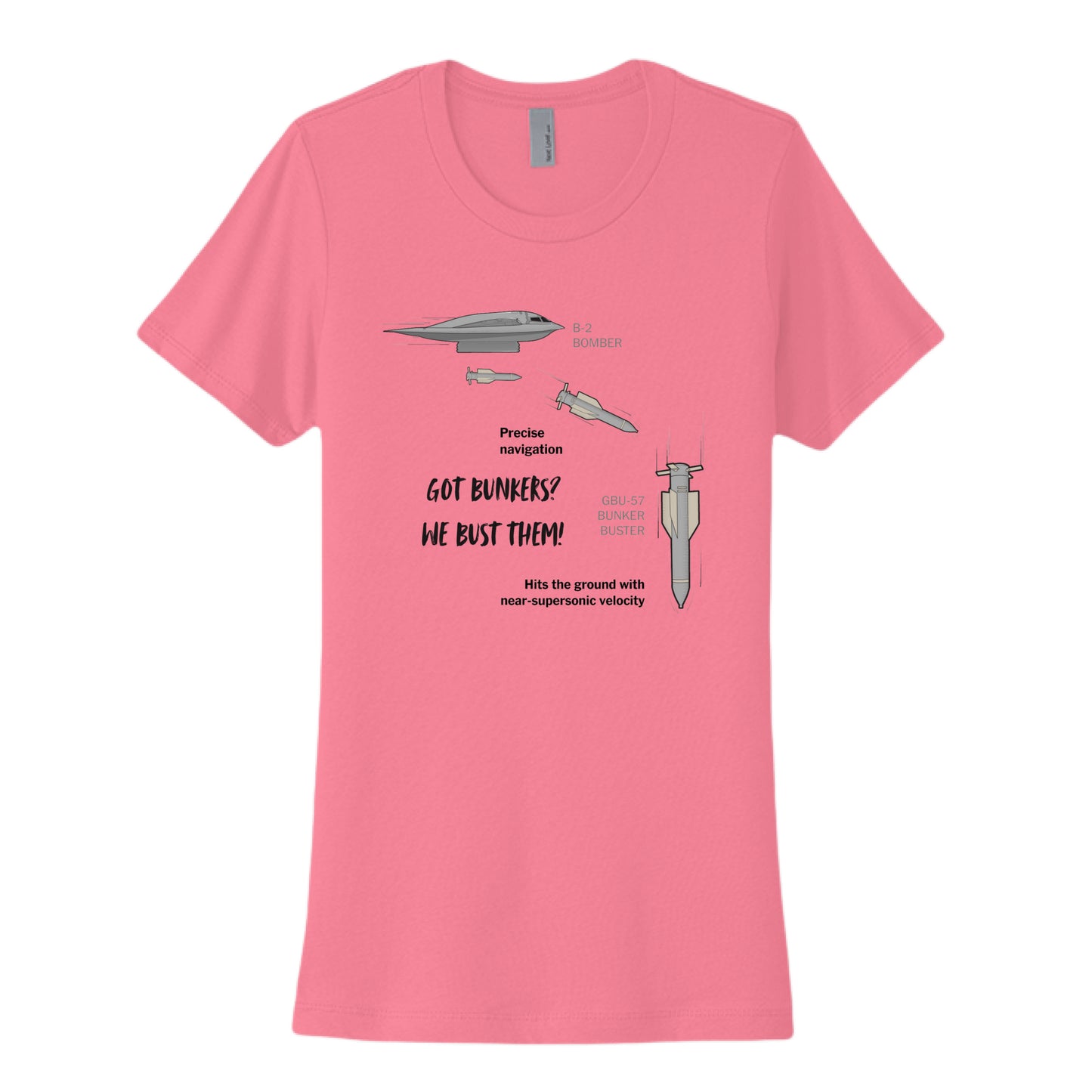 Beauty meets blast radius. This shirt isn’t here to play nice — it’s here to drop heat like a B-2 over hostile ground. Inspired by the real-life airstrike that lit up Iran’s bunkers, this TRBLMAKR classic is tailored for the woman who doesn’t whisper, doesn’t wait, and damn sure doesn’t miss.
