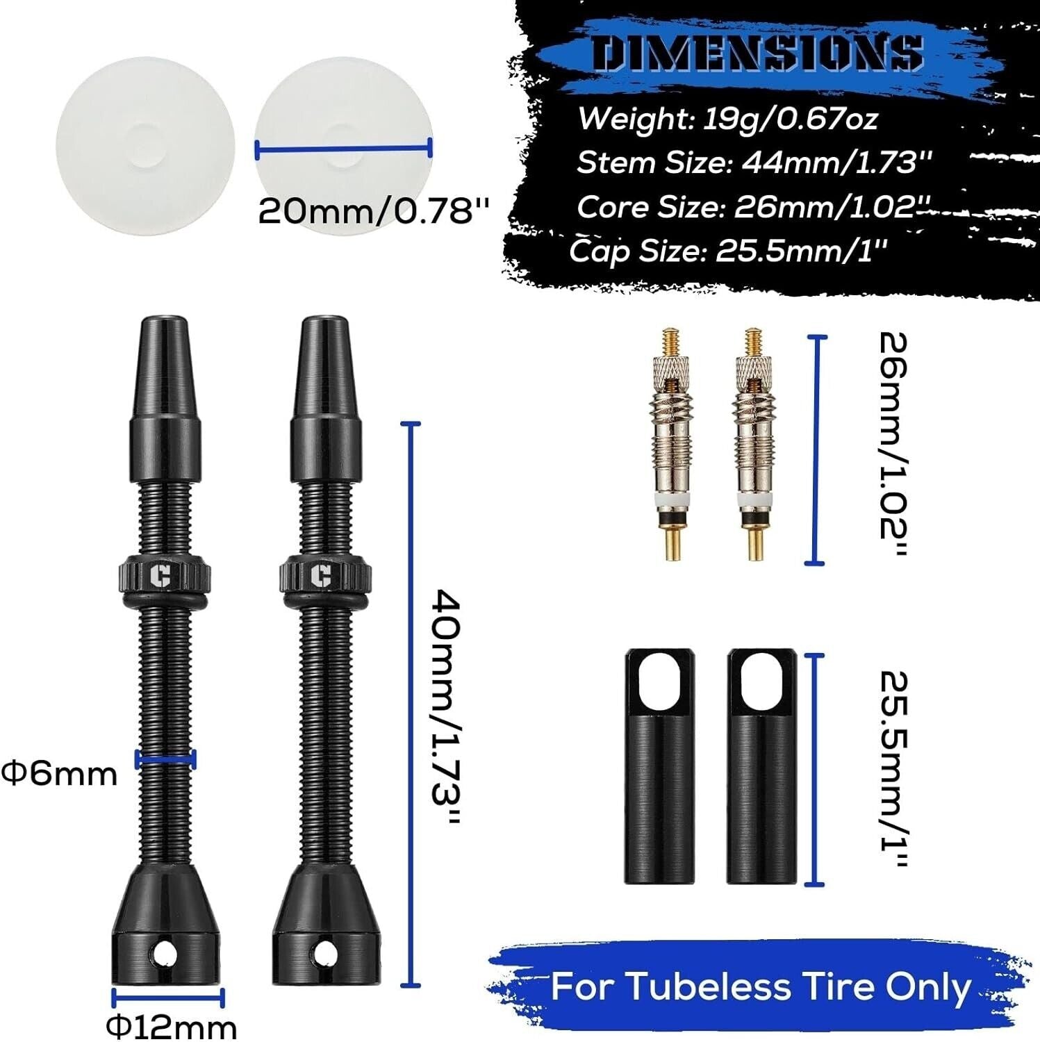 Product DescriptionCorki Cycles Tubeless Presta Valve Stem 40 44 55 mm with 2PCS Valve Core and 2PCS Remover Tool |