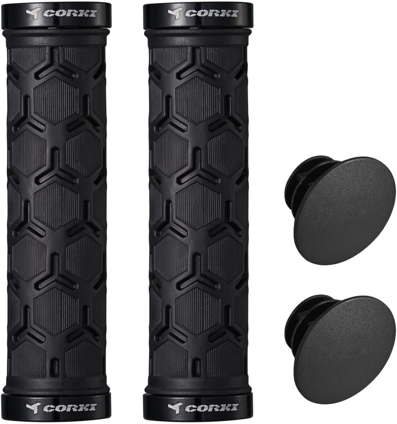CORKI BI-Cycles Double Lock On Mountain Bike Grips, & FREE CORKI Valve Stem pack
