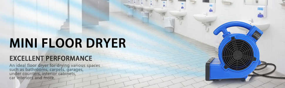 - [Home Cooling] Our power dryer fan comes in at just 6 lbs, its easy to move to any area. It has 3 angles (0°, 45° and 90°) for optimum air flow in order to help cooling garage and home or drying carpets, leaks, and spills.