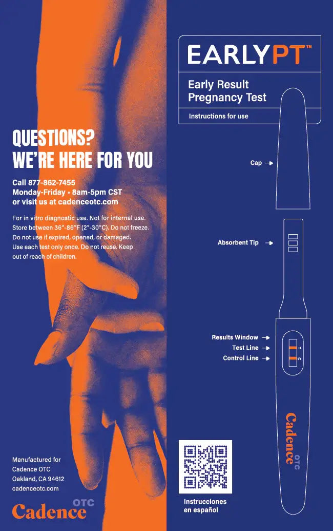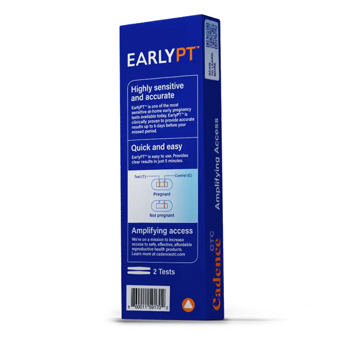 EarlyPT is one of the most sensitive at-home early pregnancy tests available today. Our early detection pregnancy test is clinically proven to provide accurate results up to 6 days before missed period. Why EarlyPT Pregnancy Test From Cadence OTC? - Most sensitive at-home early pregnancy test available on the market, starts to detect hCG levels as low as 10 mIU/ml.