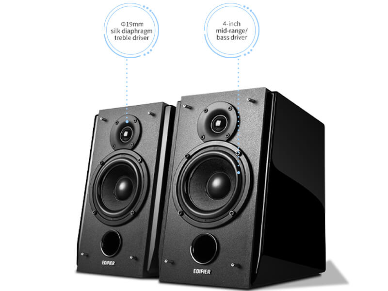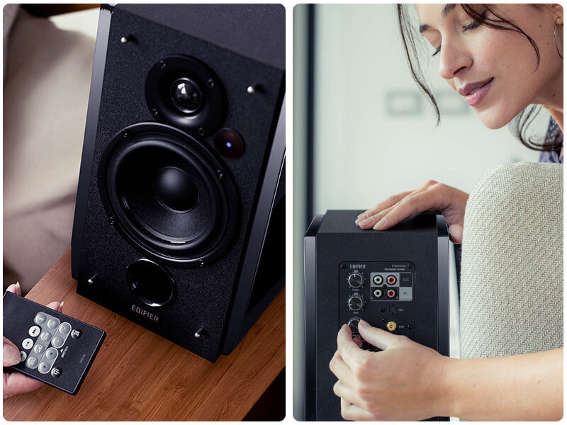 We understand that asthetics is also important in an audio setup. The R1850DB active bookshelf speakers feature a high gloss black finish that look beautiful.