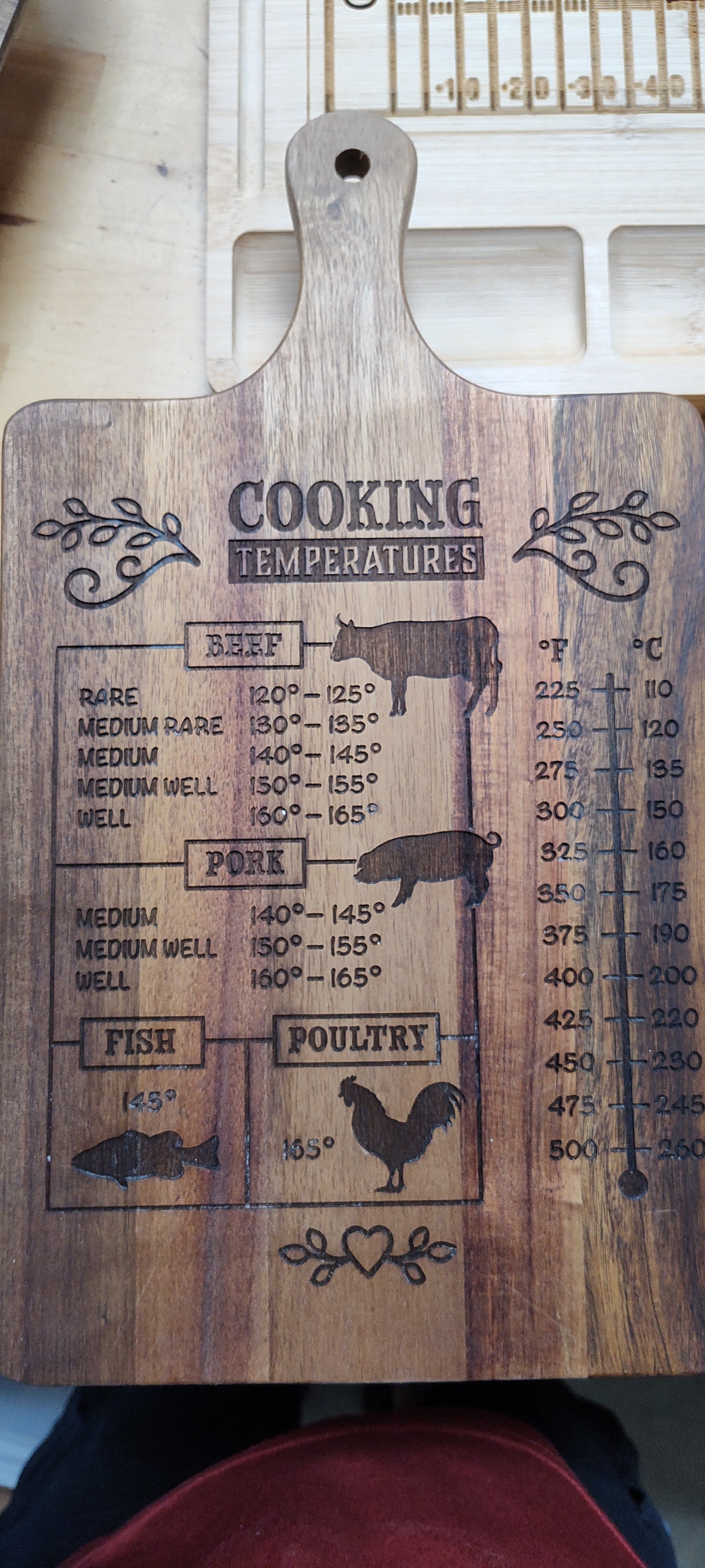 Engraved Cutting Board Paddle Shaped - Cooking Measurements Conversions - Wood - Cooking Gift