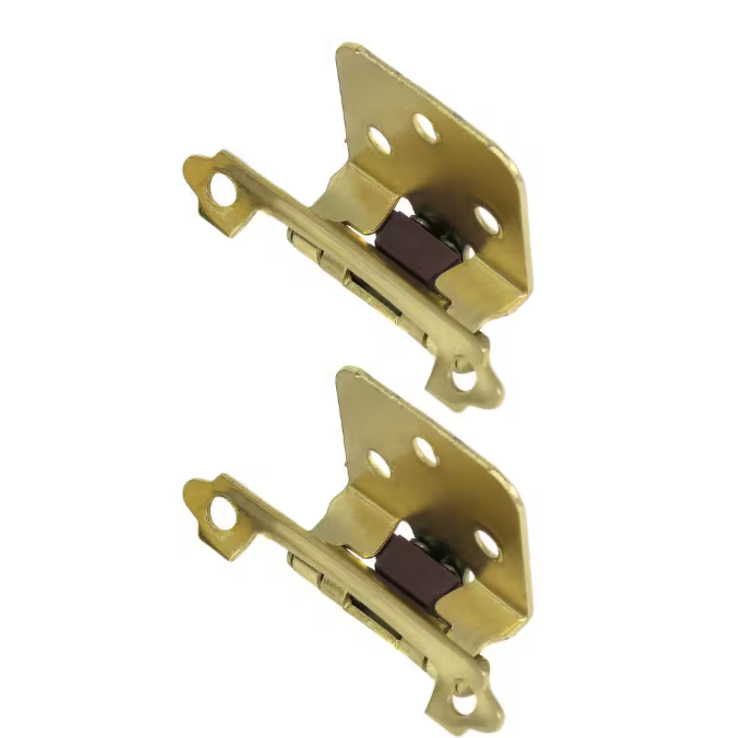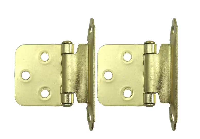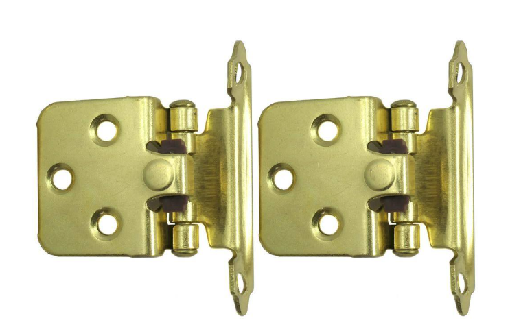 This semi-concealed hinge is self-closing, has no inset and installs like a traditional hinge. Solid metal construction allows for long-lasting durability. Each piece is manufactured with extra care to ensure a lasting product.