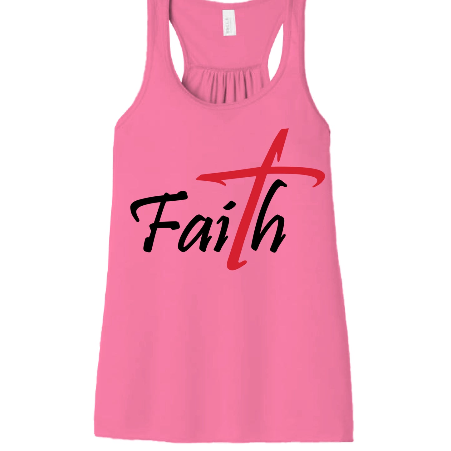Breathe easy and wear your faith proudly with this Eternal Hunterz racerback tank. Featuring the word Faith with the “T” shaped as a cross, this lightweight, flowy tank delivers a flattering drape with a hint of movement. Perfect for workouts, summer days, or layering under a jacket—it’s a versatile piece that keeps your style grounded in what matters most.
