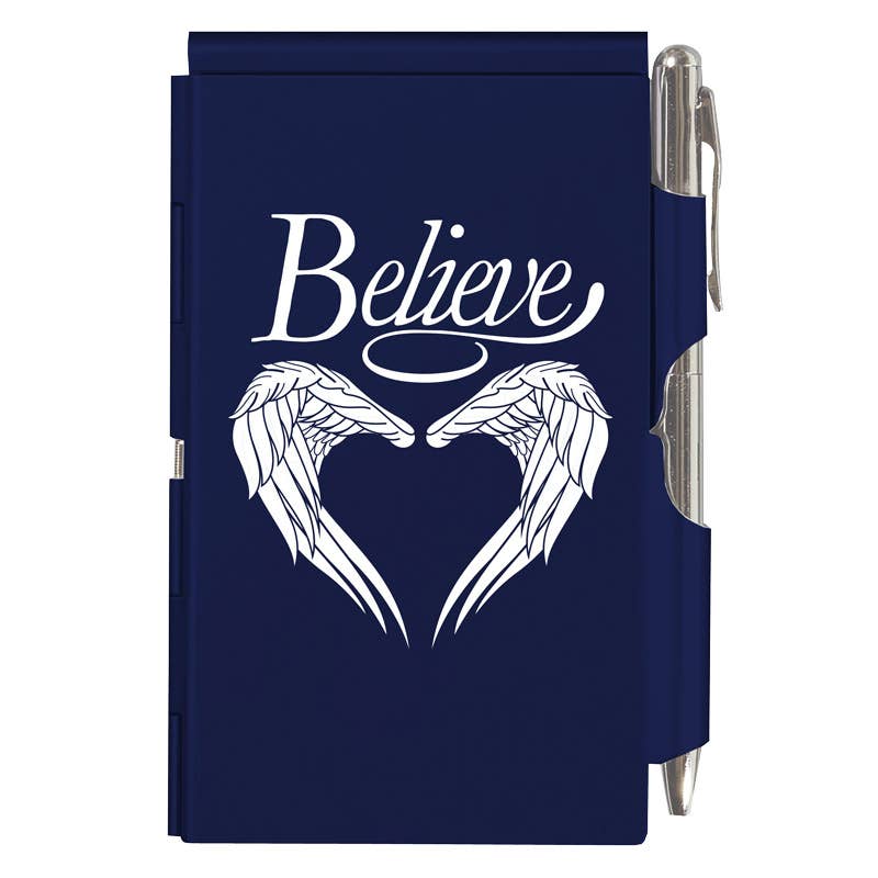 Perfect for Easter Baskets, Confirmations, Baptism and First Communion. Slim and lightweight, this notepad and pen fits in a backpack, purse or pocket. The retractable pen holds the aluminum case closed. Lift the pen and the spring-loaded case reveals a 50 sheet perforated notepad. Size: 2.75" x 4.5"