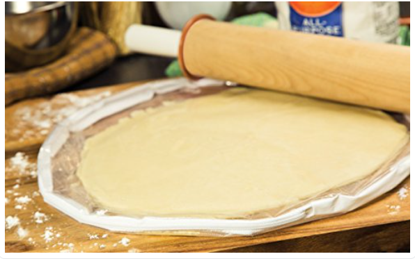 - Place pie dough into bag and roll out a nearly perfect circle quickly