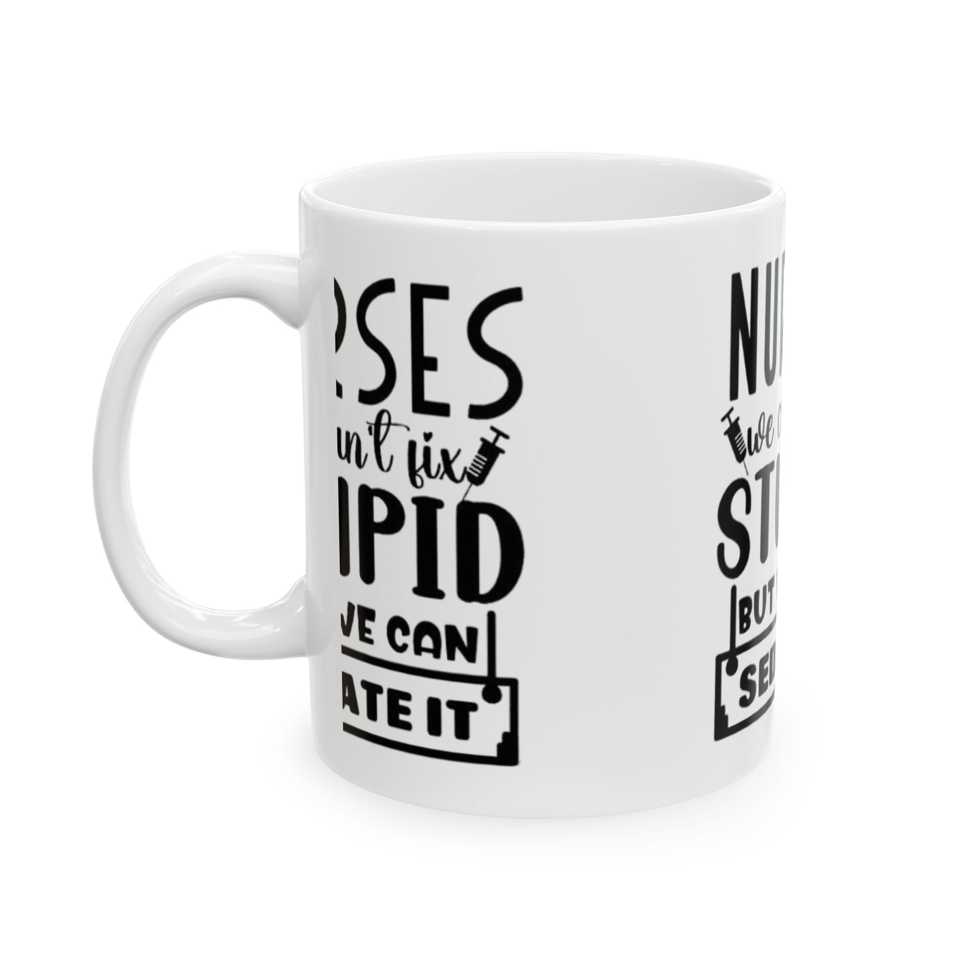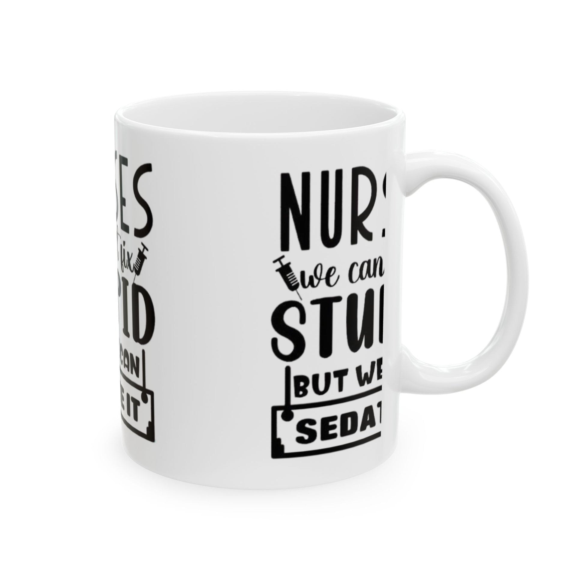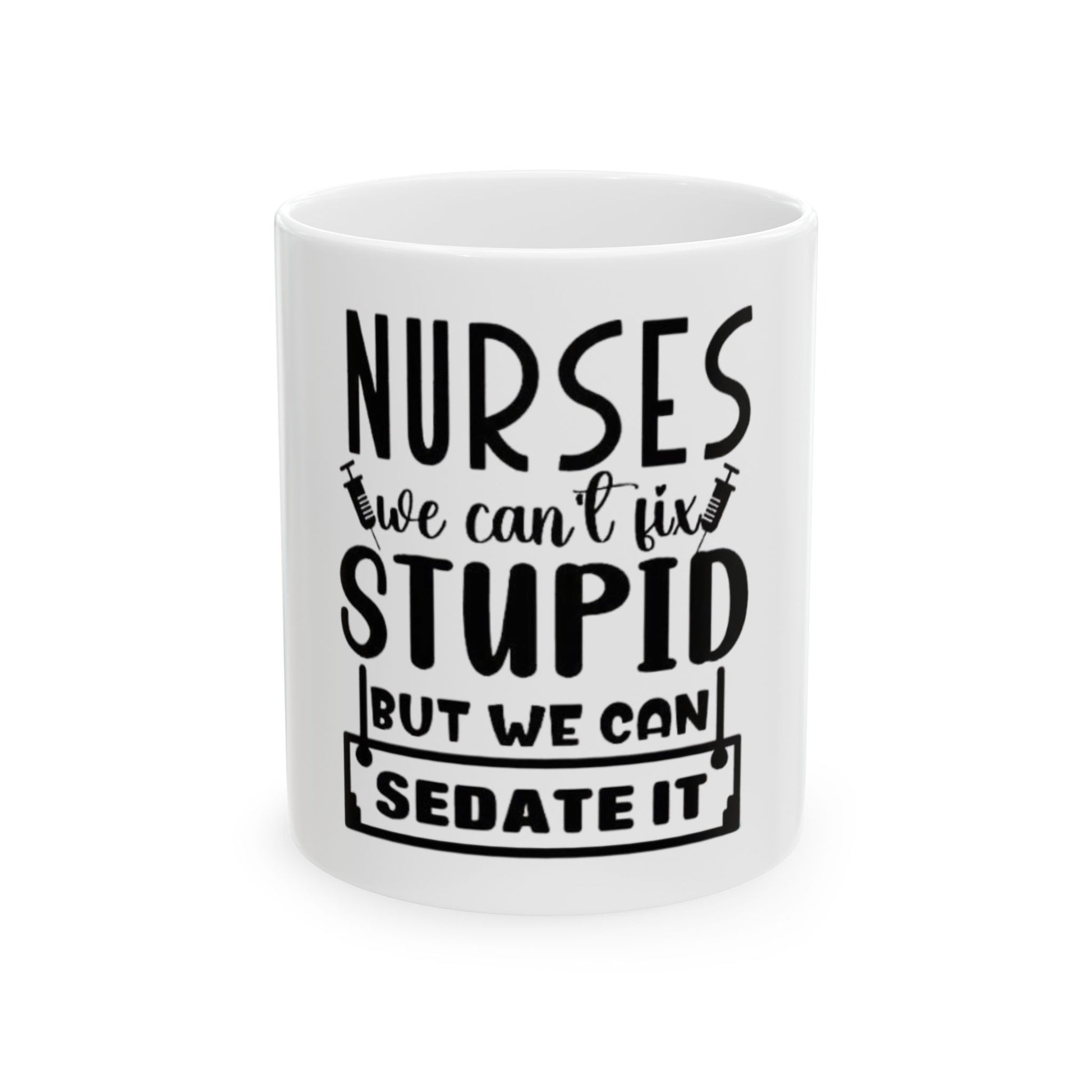 Funny Nurse Mug - We Can't Fix Stupid, But We Can Sedate It | Gift for Nurses, Humor Mug, Medical Profession Coffee Cup, Nursing Gift
