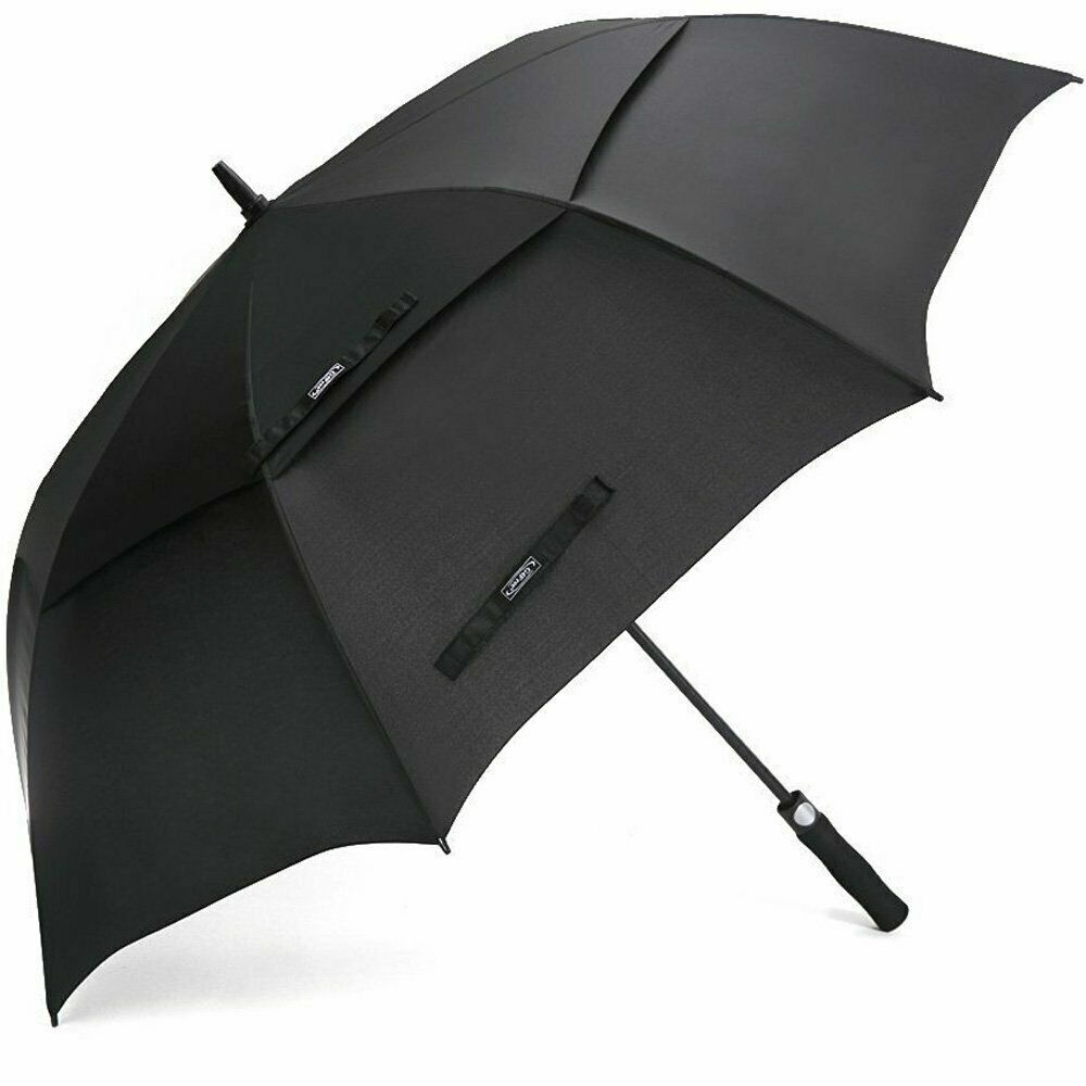 Portable Golf Umbrella Large Oversize Double Canopy Vented Windproof Waterproof Automatic Open Stick Umbrellas for Men Women(Black)