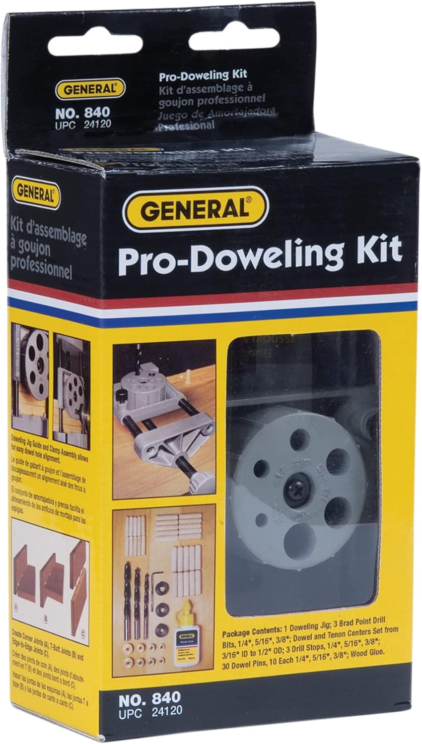 By assuring alignment of dowel holes and pins, General Tools 840 Revolving Turret Doweling Kit helps create professional-quality edge-to-edge, right-angle and edge-to-surface joints that can be press-fit or glued. It is a precision jig that assures accurate line up of dowel holes in furniture and carpentry, 6 size precision doweling jig, rust resistant plated turret & parts & painted die cast body.