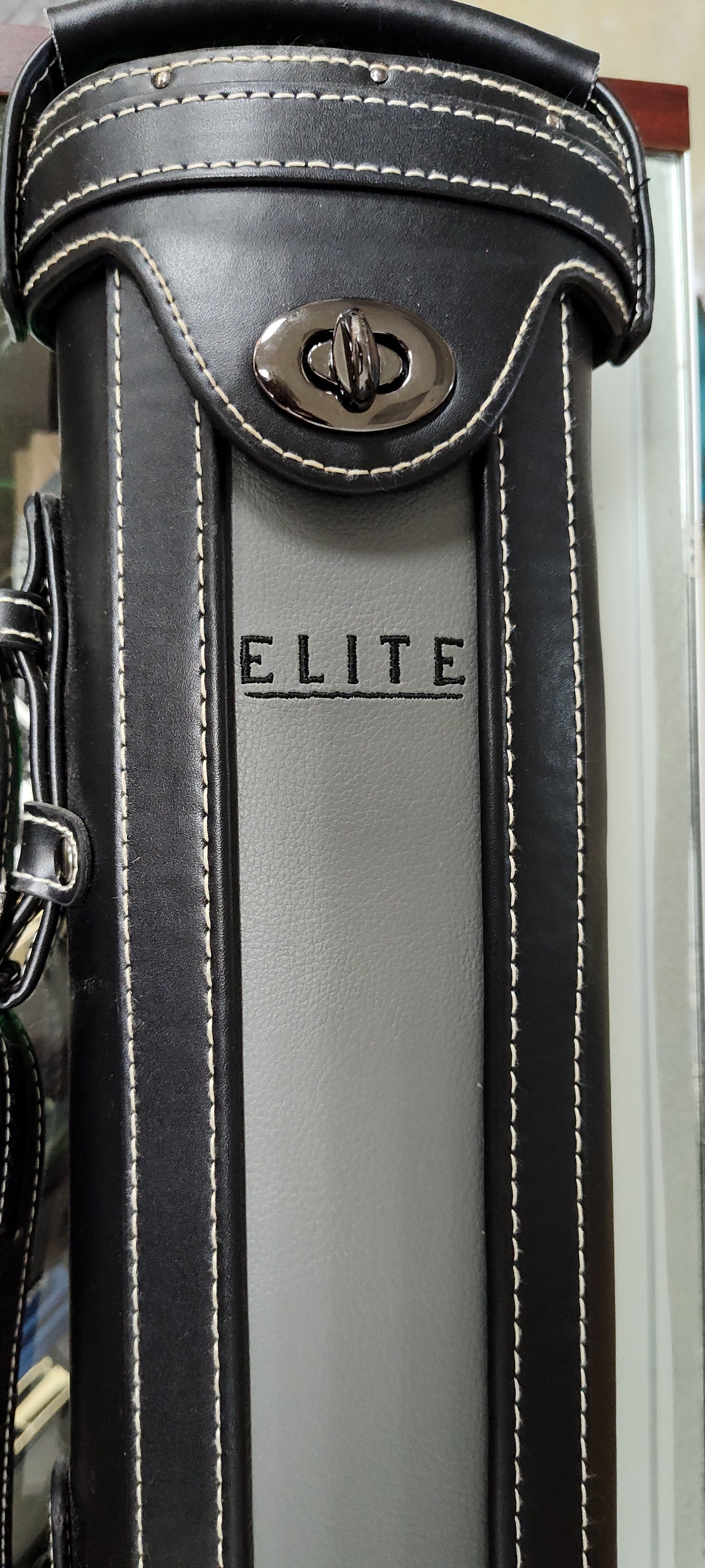 ELITE 2X2 Grey Vintage Pool Cue Case has a carrying handle on the top and side, as well as an adjustable shoulder strap. Oval shape made out of vinyl with 15" pocket with side pocket for jump butt. Fits up to 31 inches with top closure snap and adjustable strap on side and back. Cues and shafts insert in either direction.