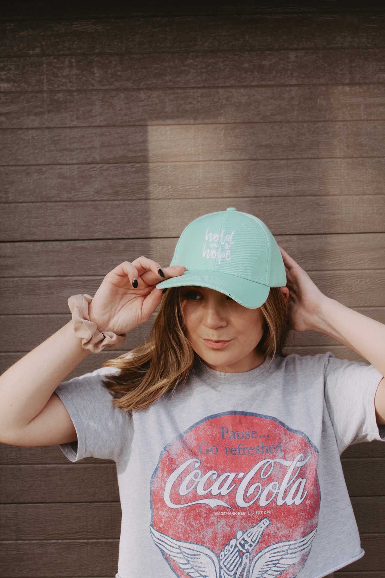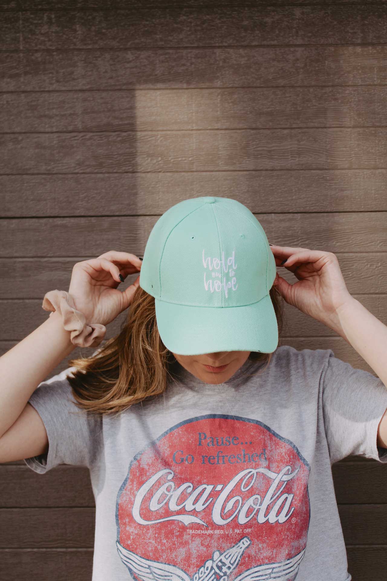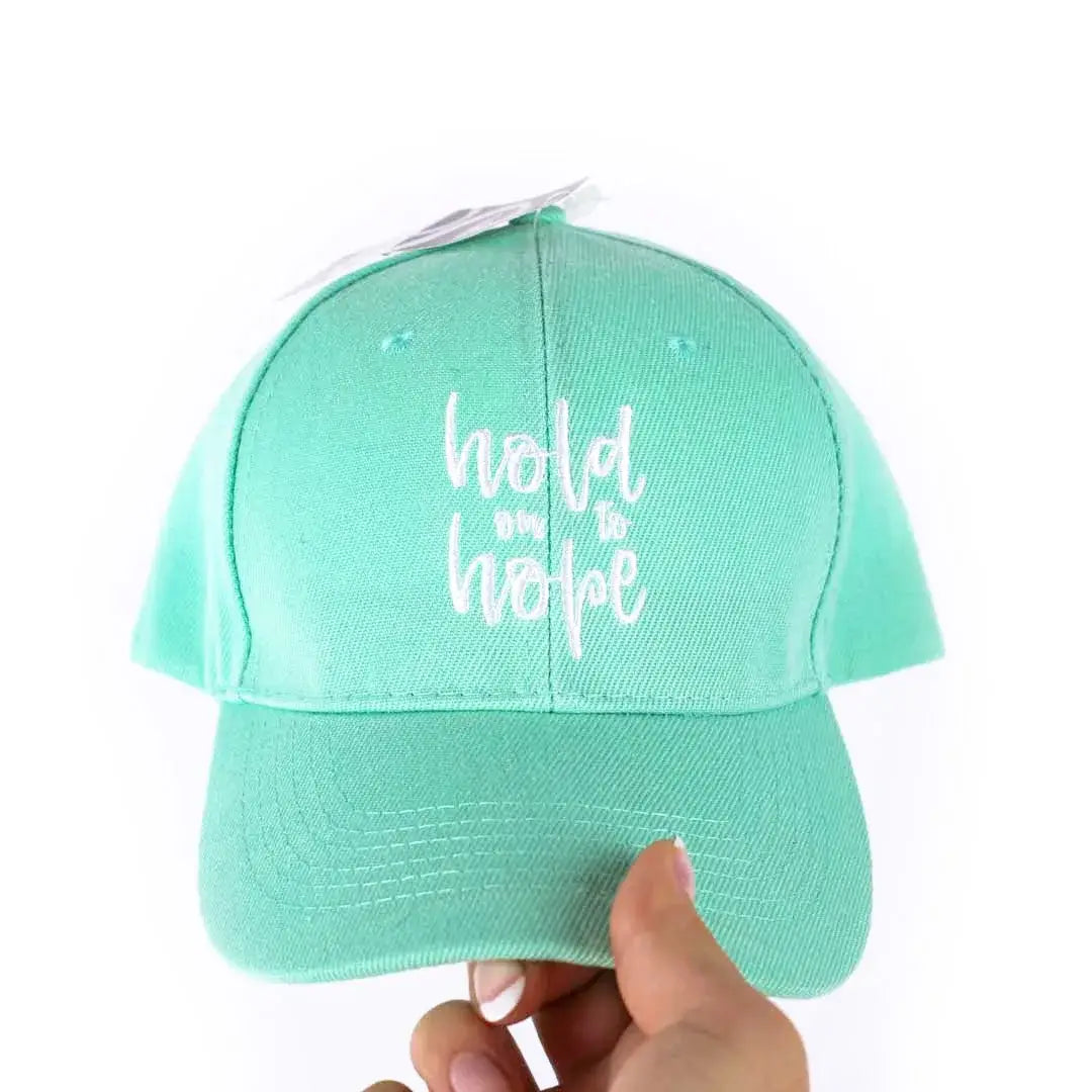 This sea green cap is adorned with a "Hold onto Hope" design, embroidered in white, making it a perfect accessory for expressing your belief and adding a splash of color to any outfit.