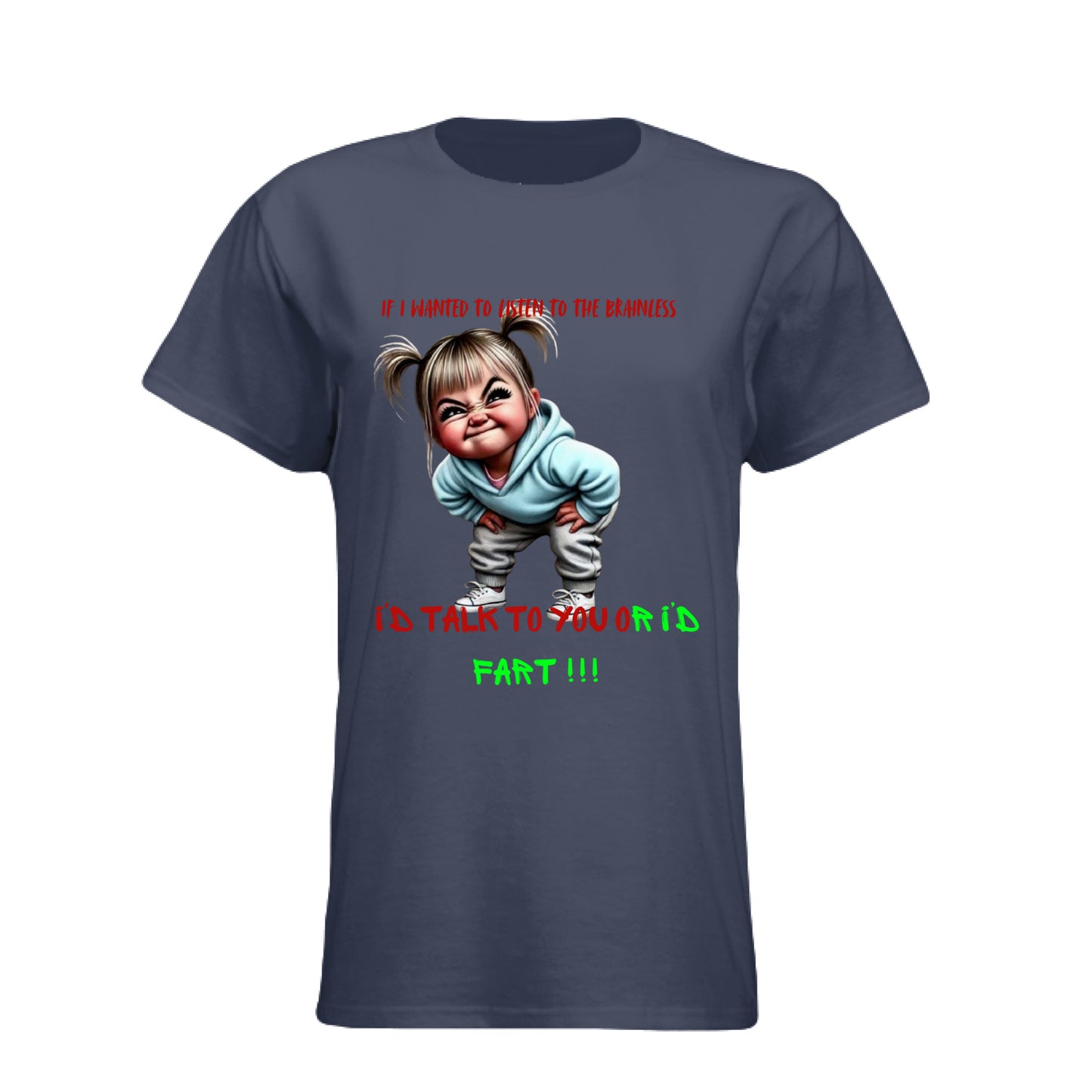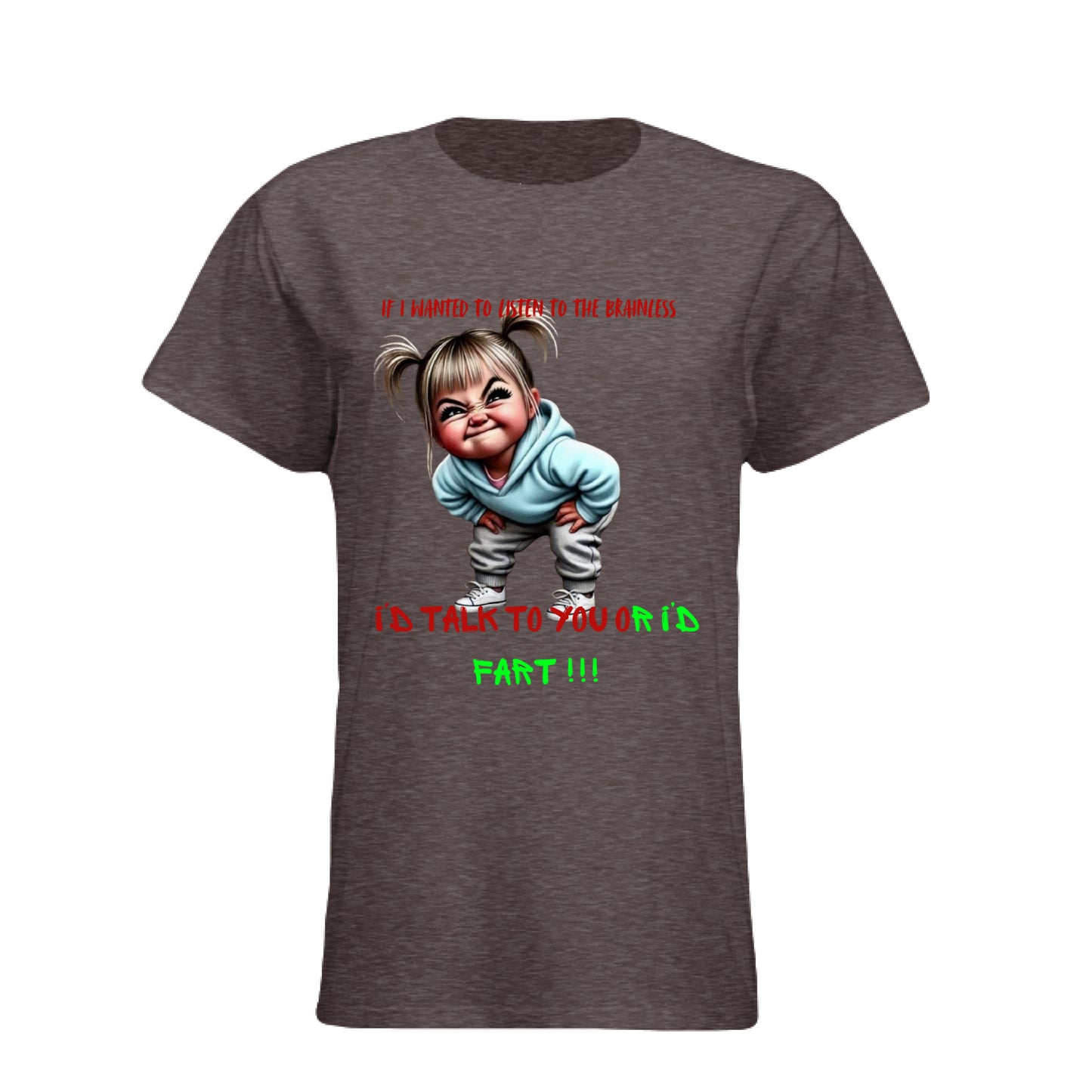 Serve up a double dose of sass with this bold tee that says, “If I wanted to talk to the brainless, I would talk to you… or fart!” Paired with a cheeky graphic of a girl mid-fart pose, it’s the ultimate conversation ender. Printed on the Next Level 6610 Ladies’ CVC Tee, it’s soft, fitted, and ready to drop truth bombs (and maybe a few others) in style.