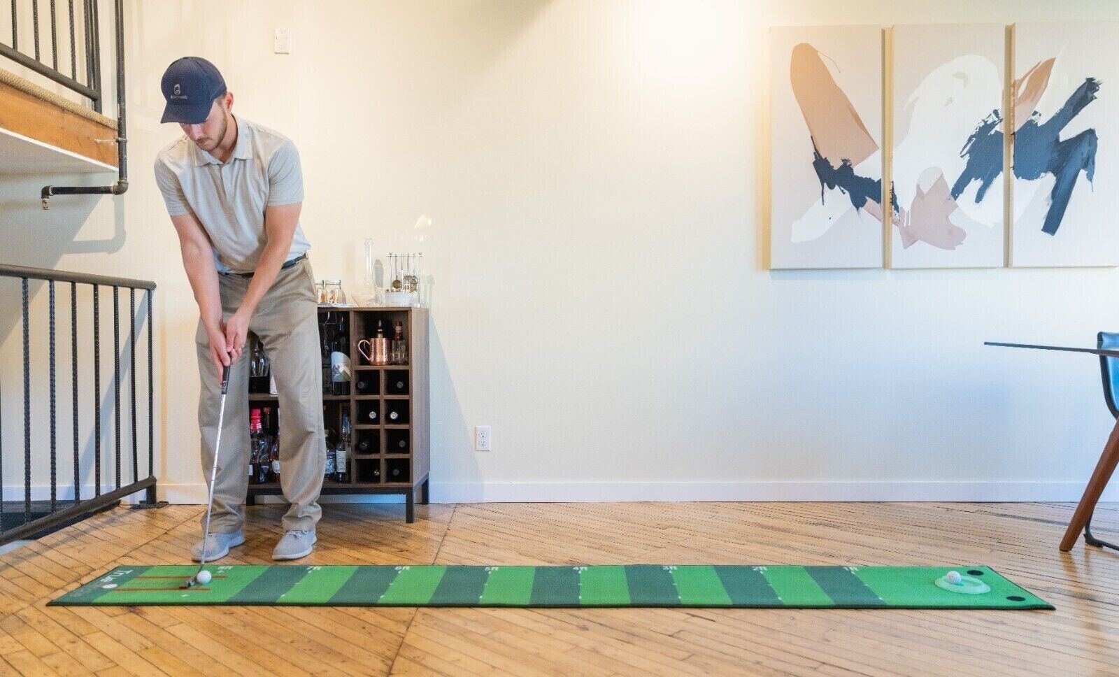 Putt to any of the three putting targets to dial in your pace - Middle hole is 4.25 inches wide (regulation cup size) and the two outer holes are 2 inches wide. Also, use the length markings on the putting green to practice from different lengths