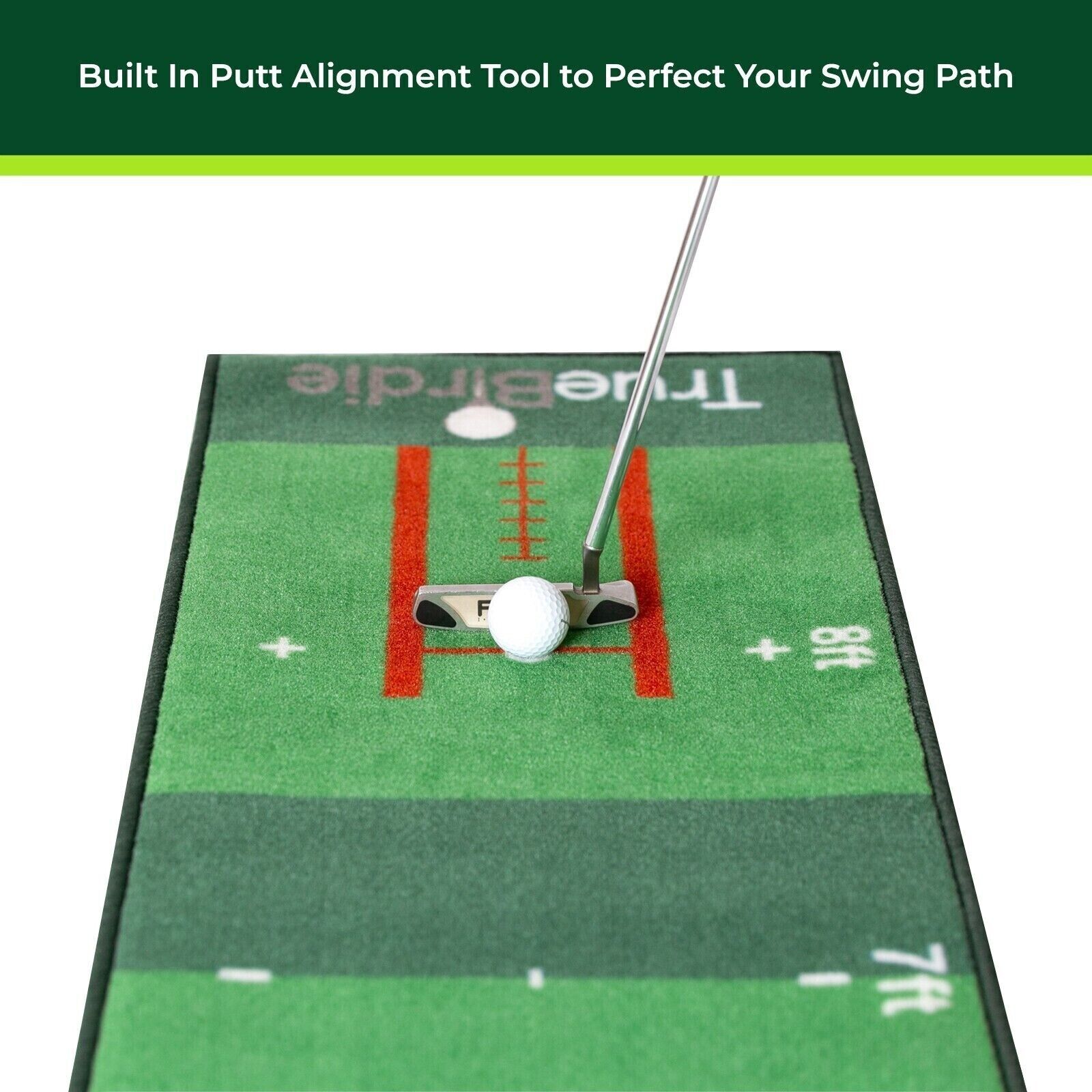 The TrueBirdie Indoor Putting Green is the ideal putting mat to keep your game sharp and to take with you anywhere. Use the 10ft long putting surface to practice from different lengths and angles to dial in your putting stroke. The built in putt alignment tool and length markings will help you fine tune your putts before your next trip to the course. Whether you're practicing before a round or rolling this mat out in your office, this is the perfect putting mat for you!
